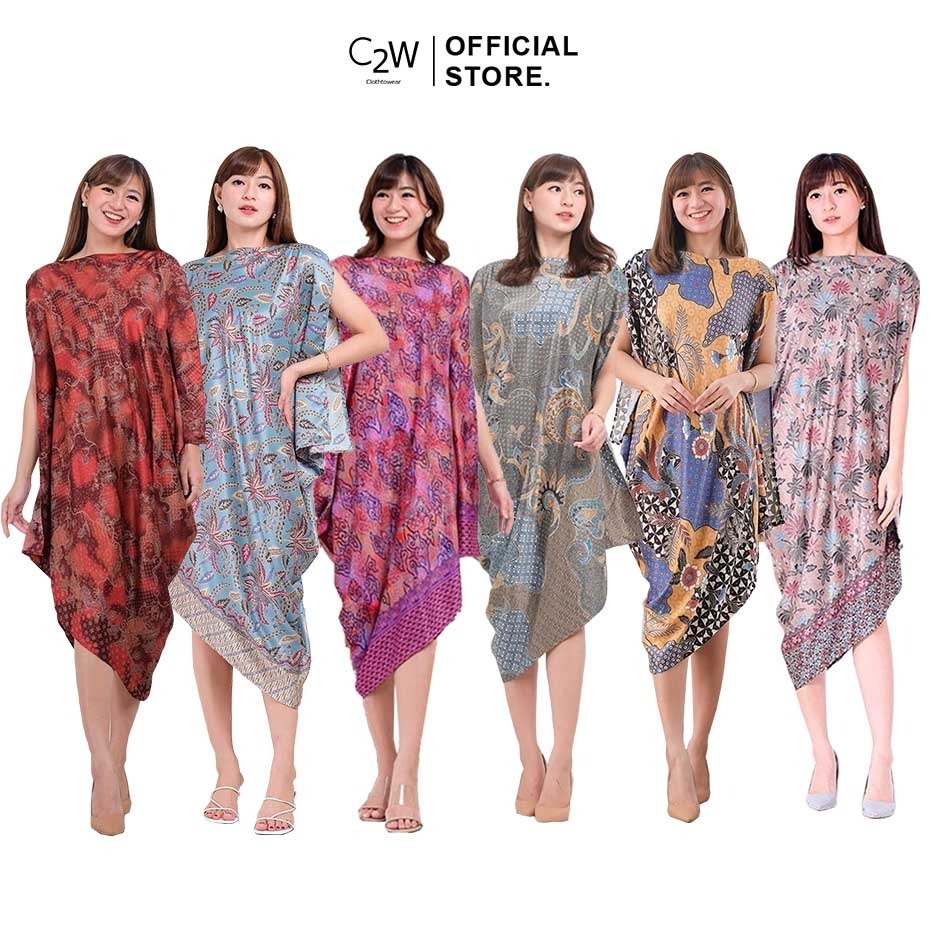 C2W CLOTHTOWEAR KAFTAN ASYMETRIC SLV DRESS BATIK WANITA ALL SIZE SATIN WOMEN'S CLOTHES