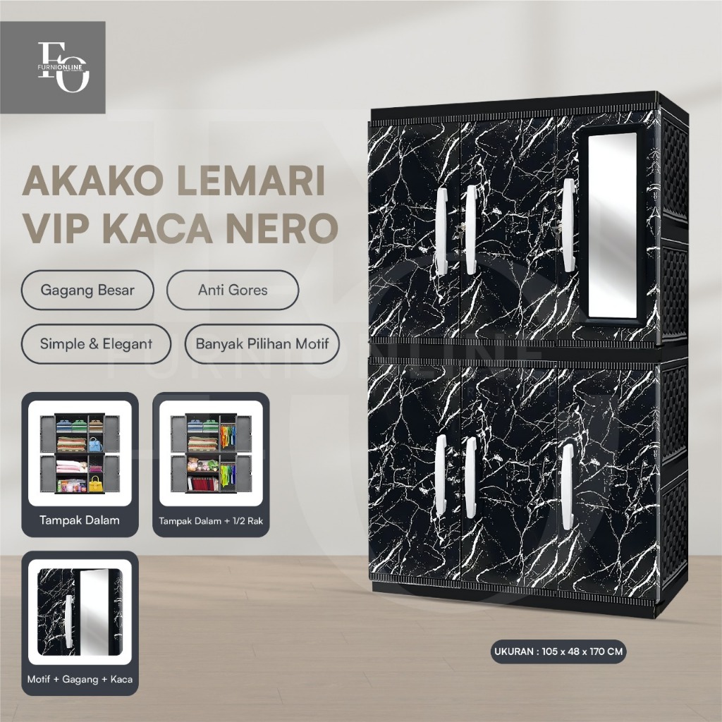 LEMARI PAKAIAN PLASTIK AKAKO 3 PINTU JUMBO MOTIF VIP LP3P RAK BAJU GANTUNGAN CERMIN KACA SUPER JUMBO MINIMALIS TERMURAH