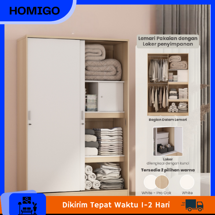 Lemari Pakaian PIRA 2 Pintu Sliding Lemari Kayu Minimalis Lemari Pintu Geser Lemari Particle Board Lemari Modern