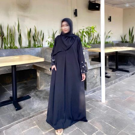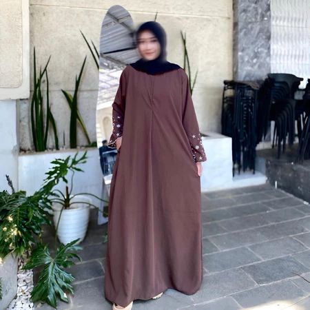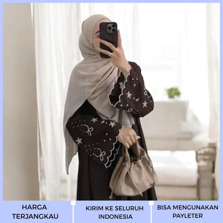 Abaya Turkey Terbaru Basic Bordir Coquette Bagian Tangan Bahan Woolpeach Lux