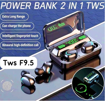 Headset Bluetooth F9 Tws True Wireless Led Smart Display Powerbank 2200 Mah