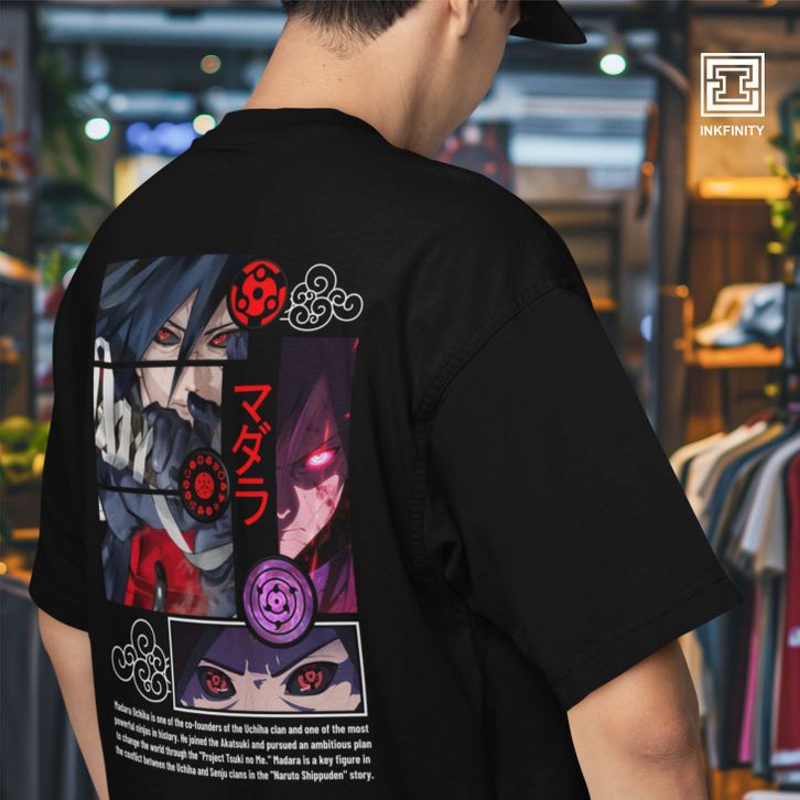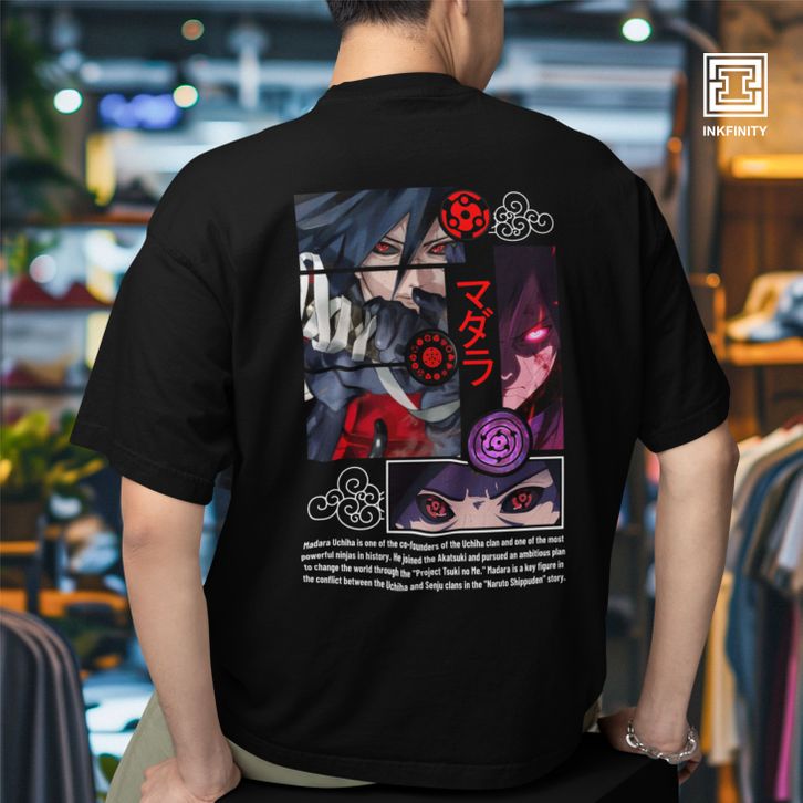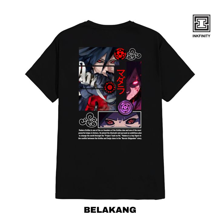 Kaos Anime Naruto Uchiha Madara V1 Pria Lengan Pendek Cotton Combed 30s INKFINITY Hitam Casual