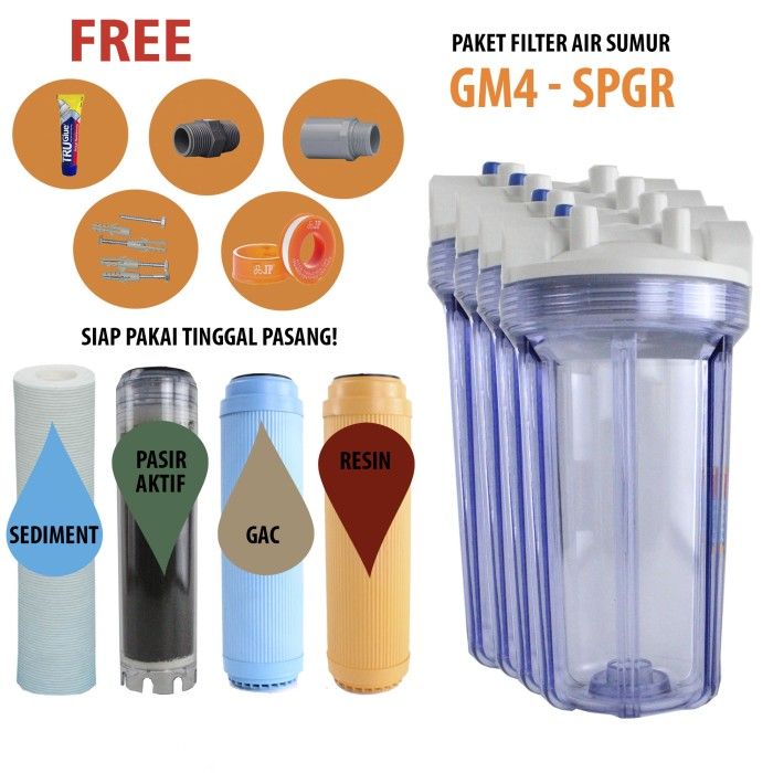 Paket NANO 4 Filter Air Zat Besi&Kapur Siap Pakai Clear 10"-3/4" SPGR