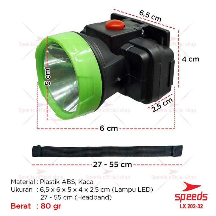 SPEEDS Head Lamp Lampu Senter Kepala Cahaya Camping Putih LED Portable 202-32