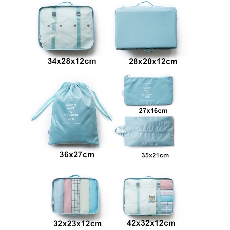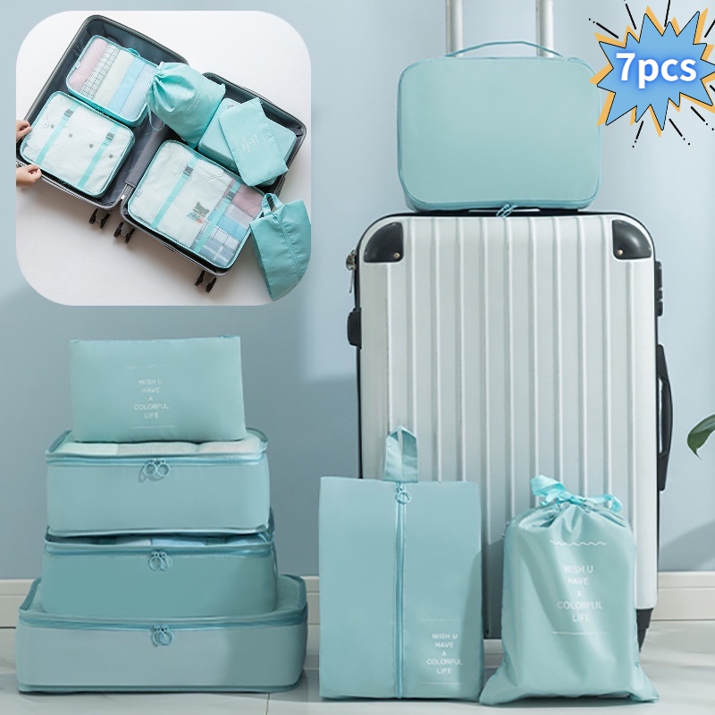 7PCS/SET TAS PENYIMPANAN PERJALANAN TAS TRAVEL ORGANIZER SET KANTONG BAGASI PORTABEL