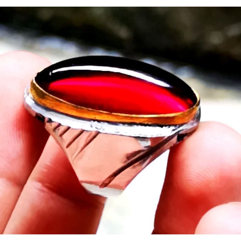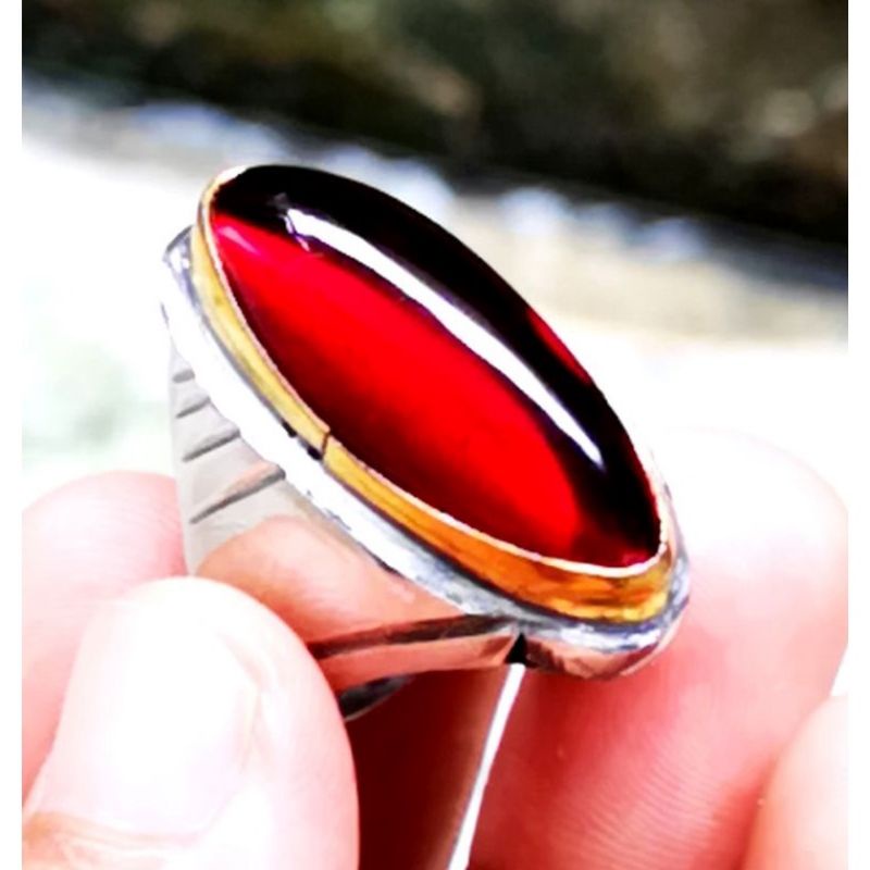 BATU AKIK MERAH SIAM PANDAN POLOS KRISTAL RING STAINLES