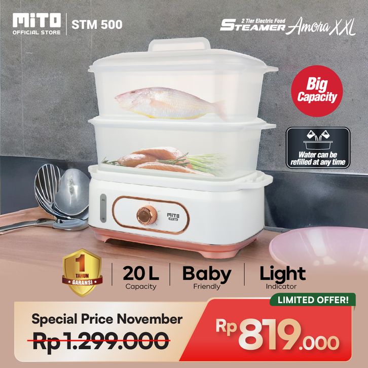 MITO Steamer Electric Food STM500 Pengukus makanan 20 Liter White Gold
