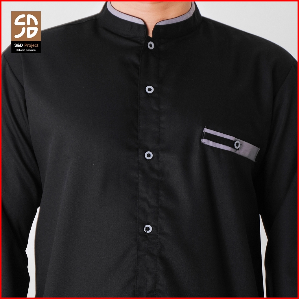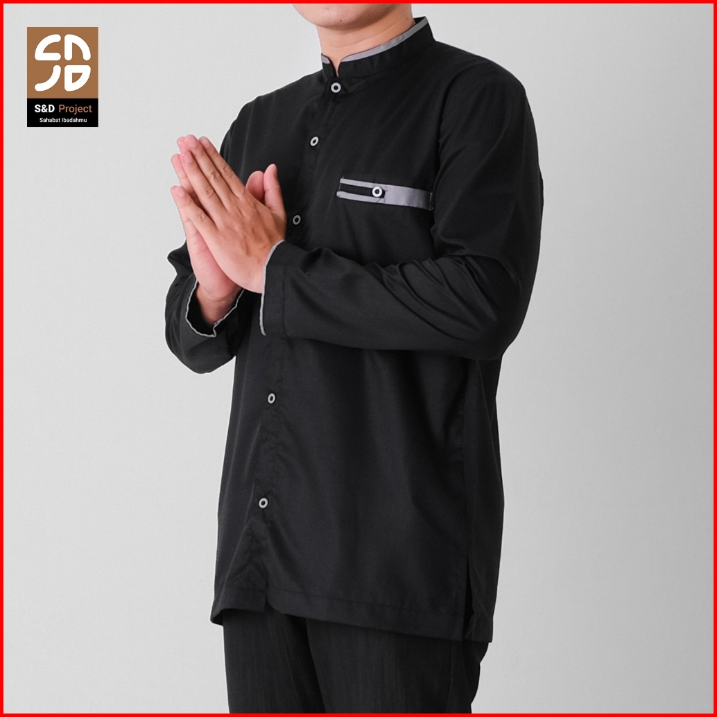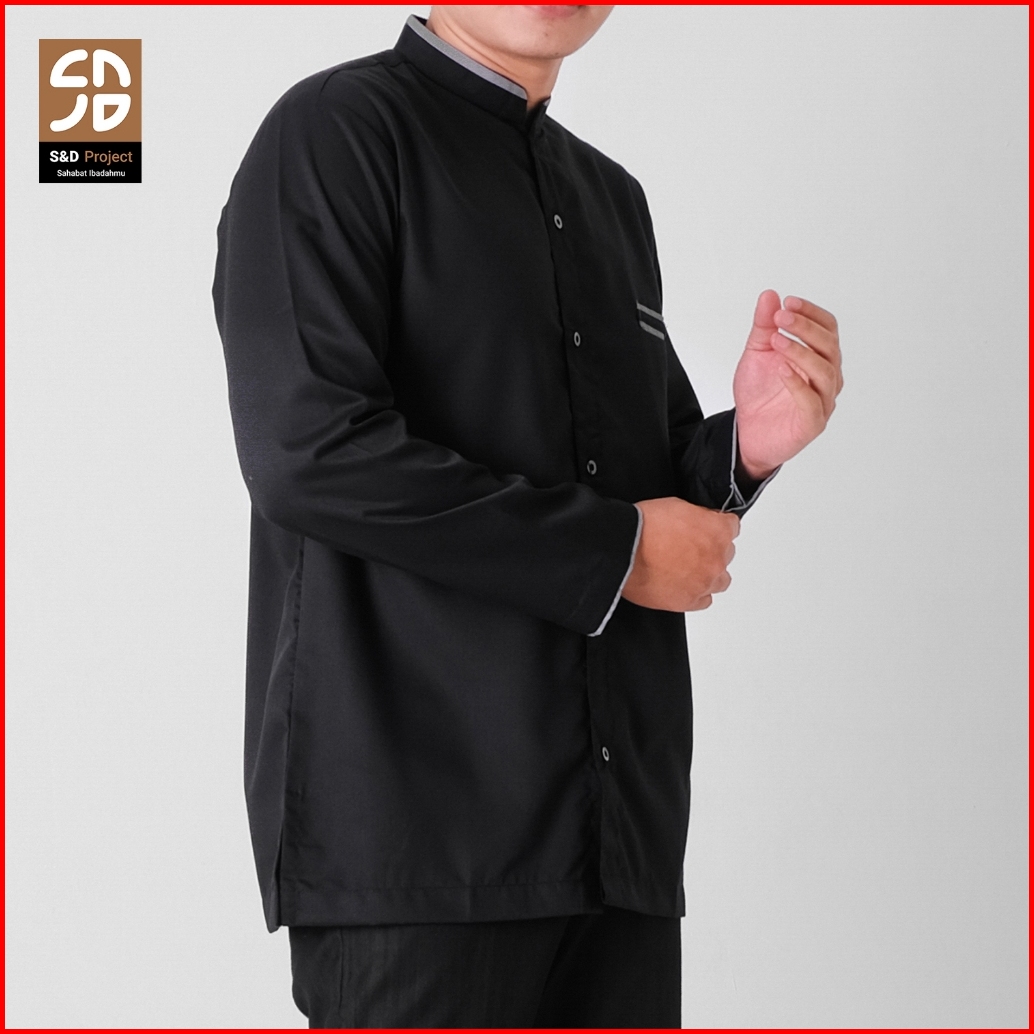 S D Project Baju Koko Katun Toyobo Polos Lengan Panjang Ukuran M L Xl - Warna Hitam