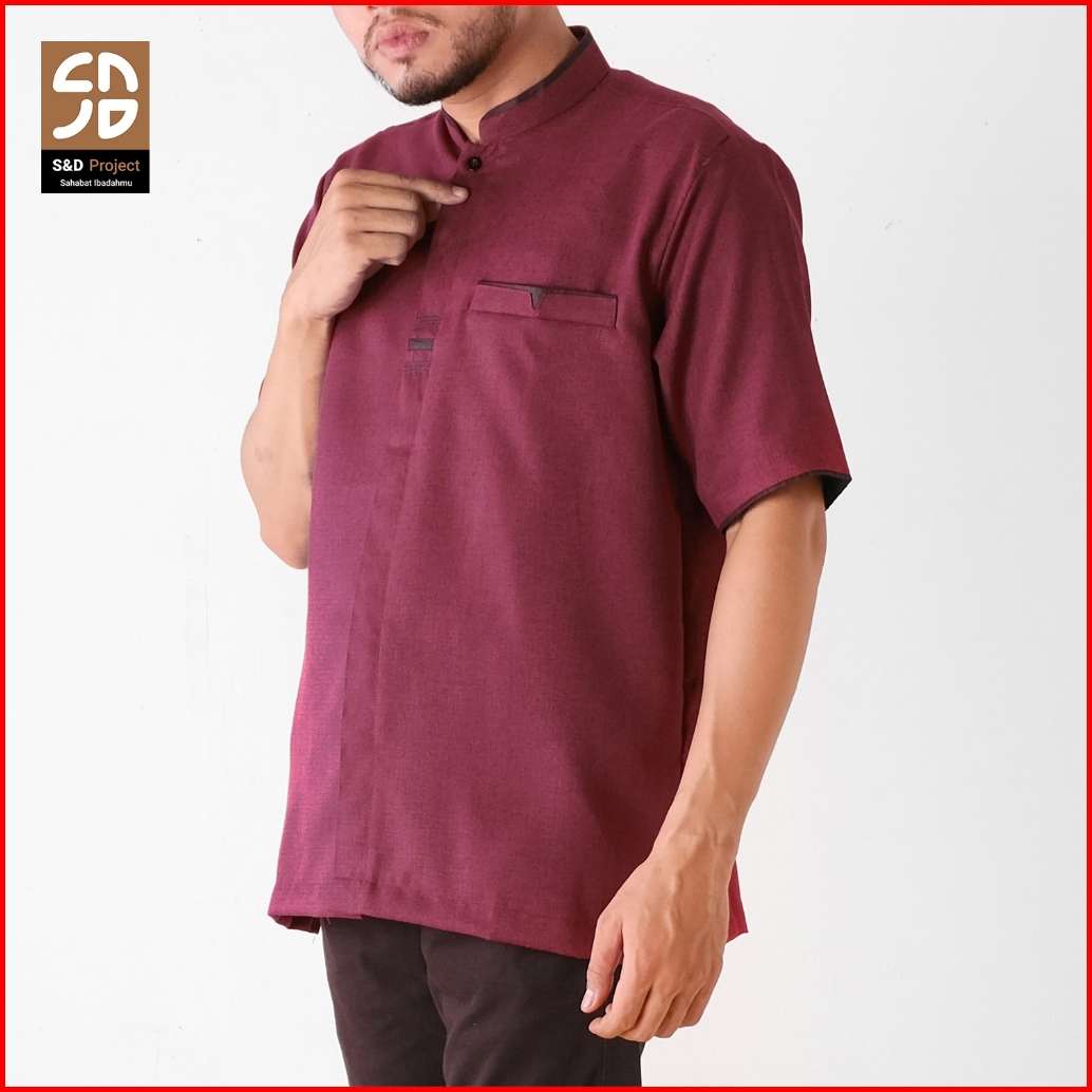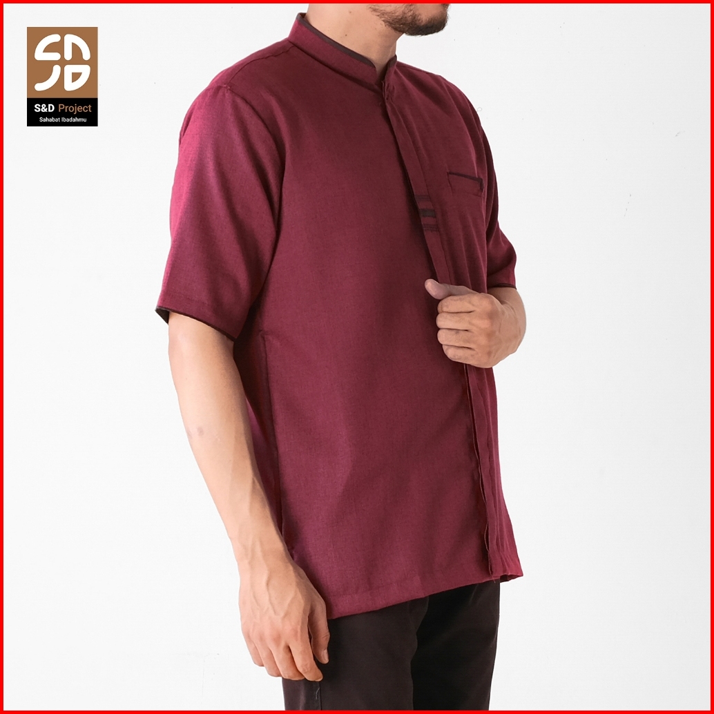 S D Project Baju Koko Katun Madinah Polos Lengan Pendek Ukuran M L Xl 2xl 3xl 4xl - Warna Marun