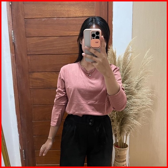 Kaos Polos Lengan Panjang Longsleeve L Baju Tshirt Tumblr Tee Hijab Lengan Pendek Katun Oversize Dusty Rose
