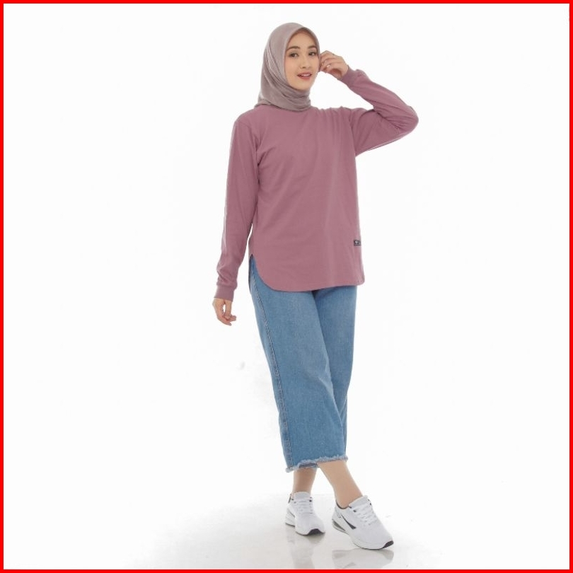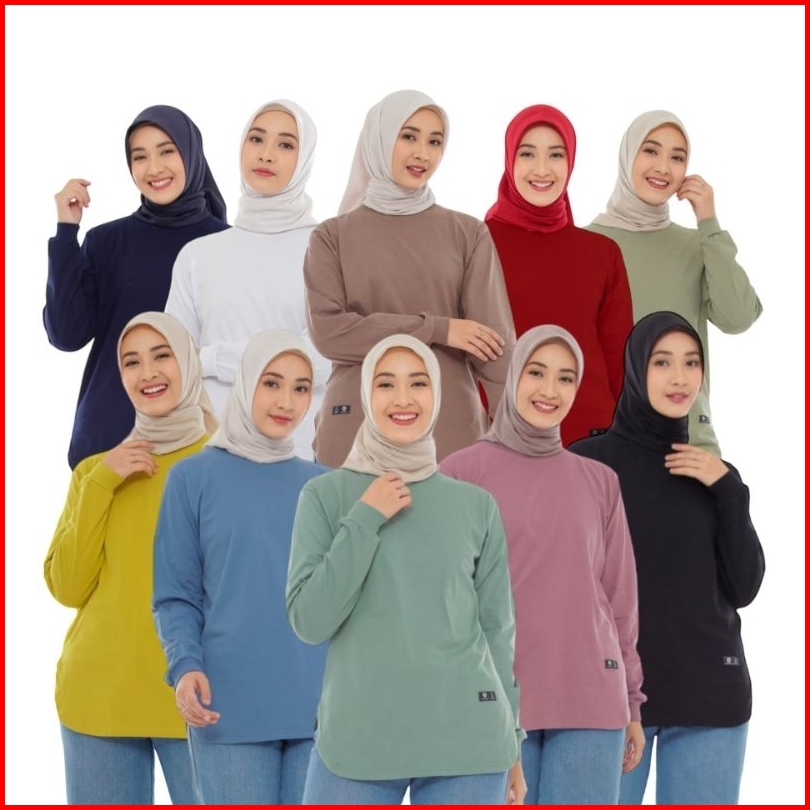 Atasan Baju Kaos Polos Wanita Tangan Panjang Top Basic Muslimah Terbaru Kekinian