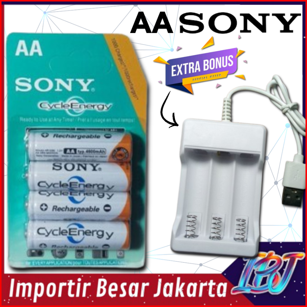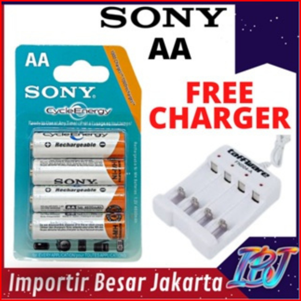 Bonus Charger Baterai Aa Sony 4600mah Isi 4 Cas Rechargeable Recharge Dan Charger Charge Isi Ulang Murah Sony Batre Aa R