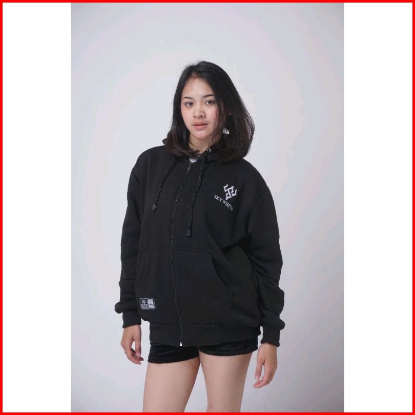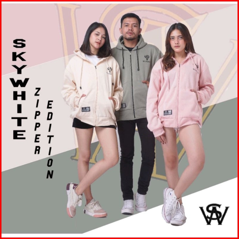 Hoodie Zipper Sweater Skywhite Bordir Timbul Bahan Gramasi 280 Halus Dan Tebal