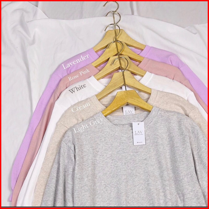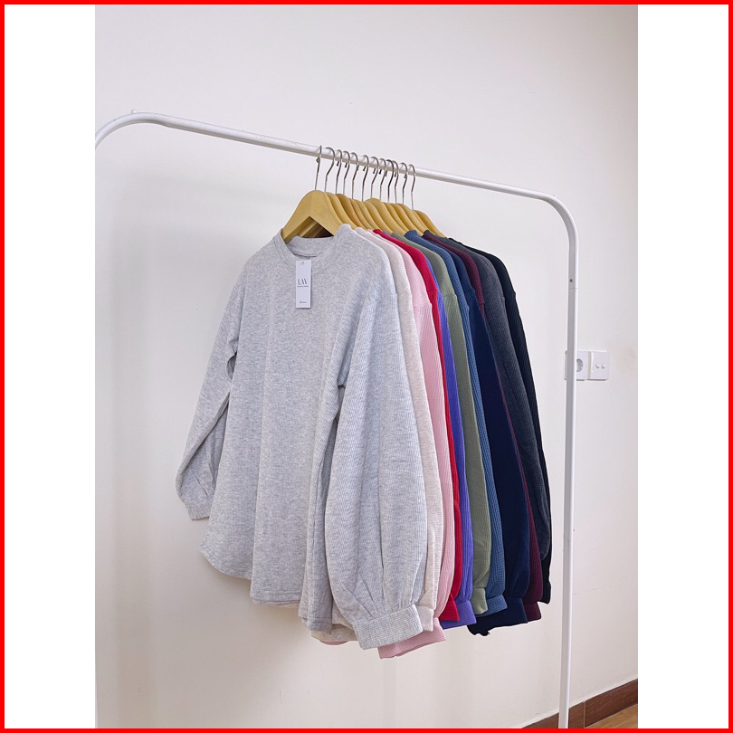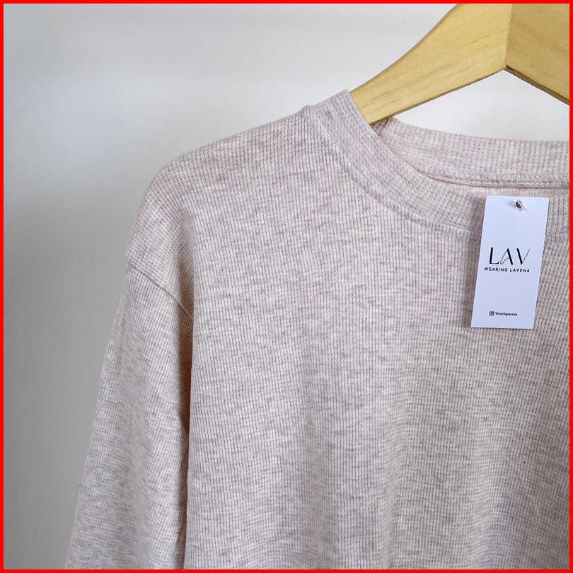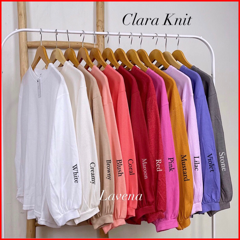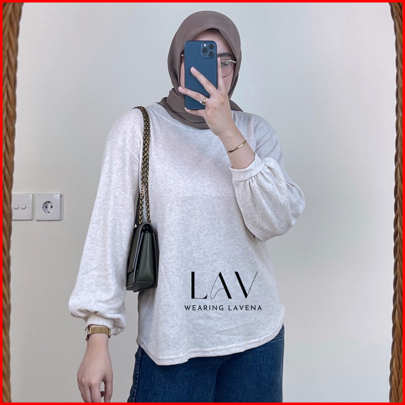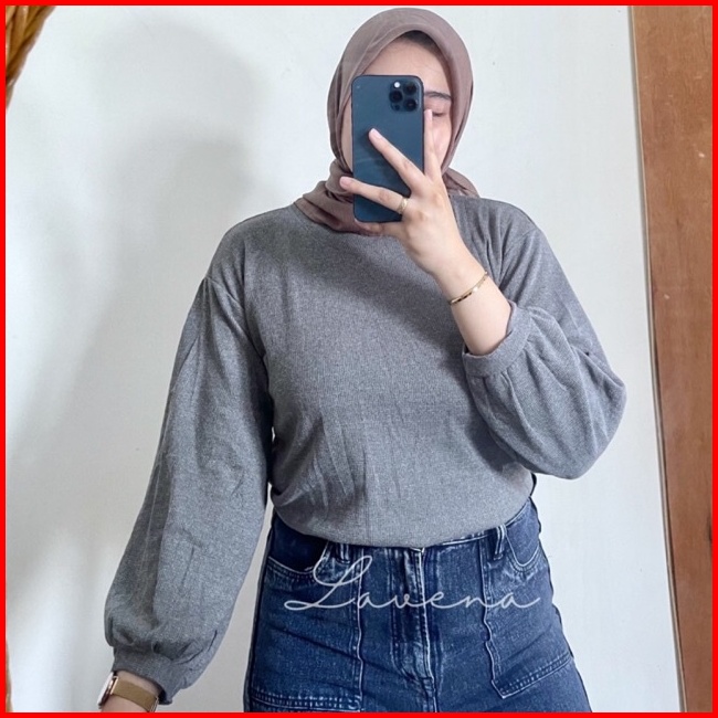 Lavena Clara Knit Blouse Waffle Knit Atasan Lengan Panjang Balon Kaos Lengan Panjang Wanita Atasan Terbaru