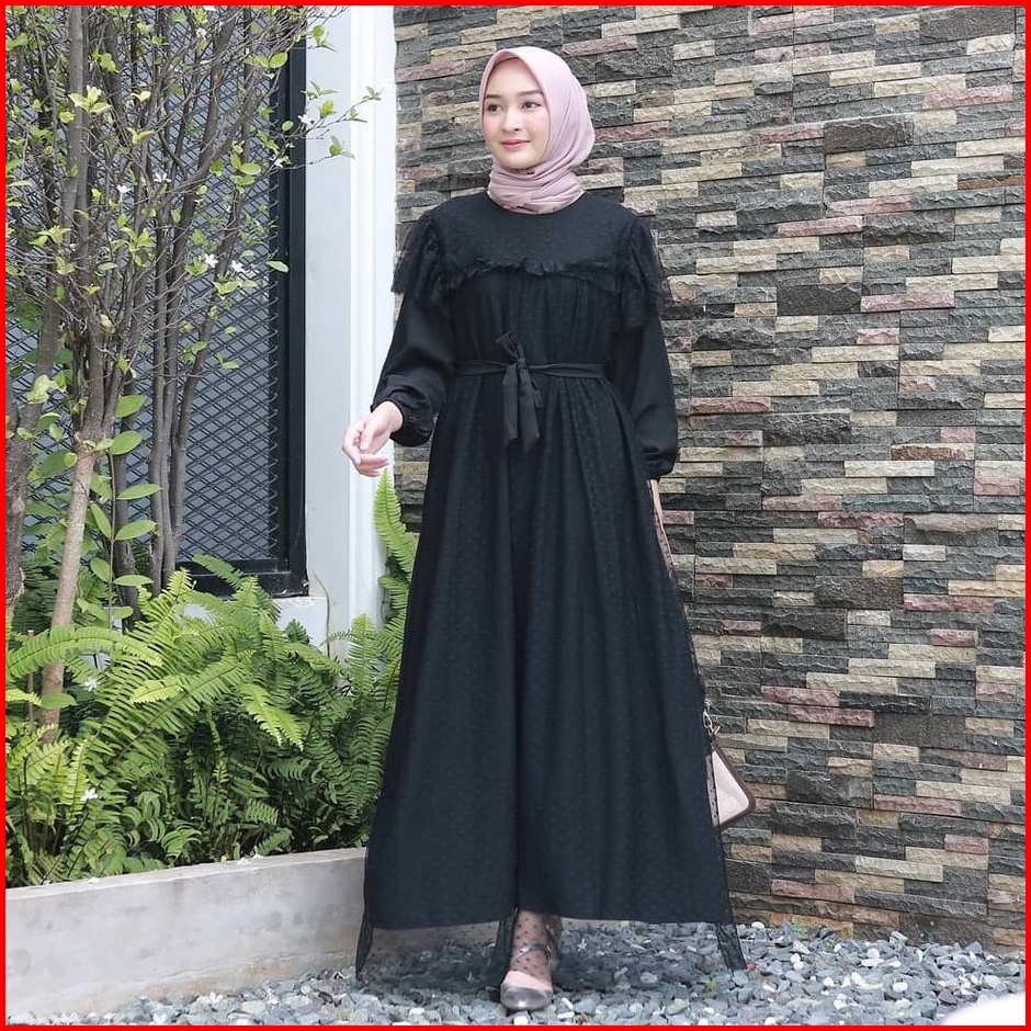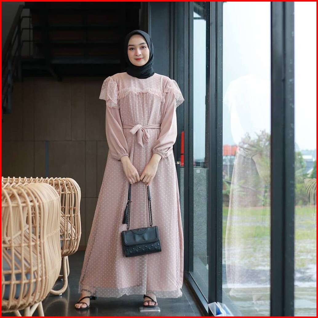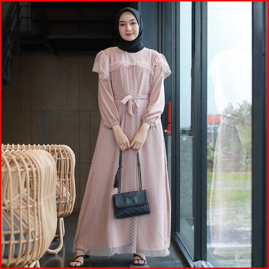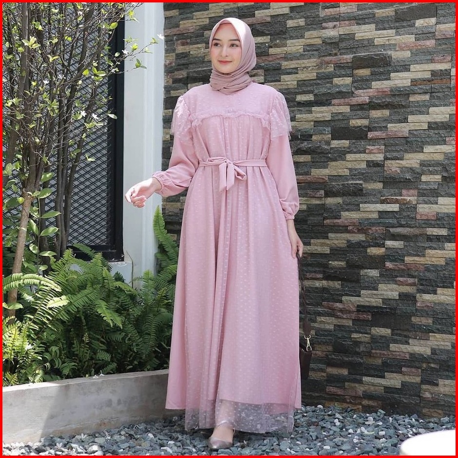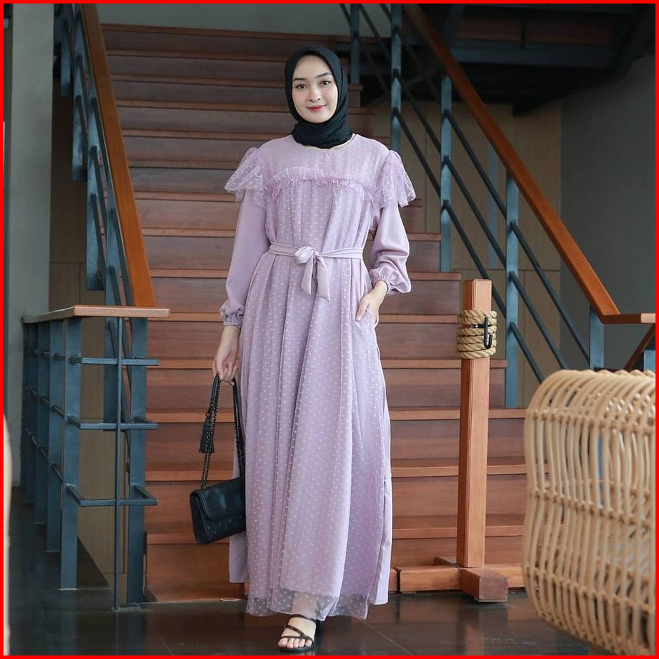 Mira Maxy Dress Brukat Tille Dotty Import Premium Lapis Puring Ld 105 Fit L Fashion Gaun Gamis Maxi Brokat Muslim Wanita