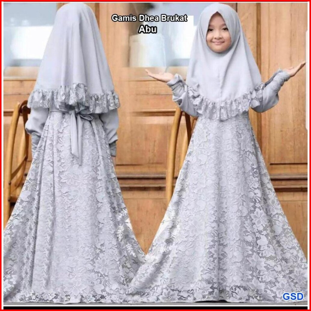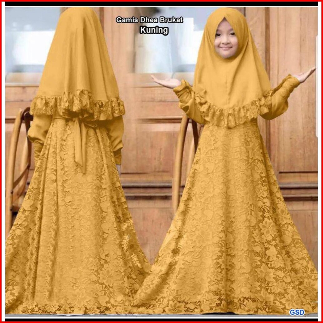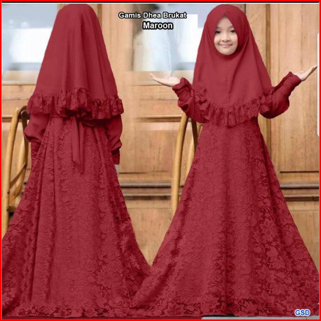 Dijamin Real Gamis Dhea Brukat Tulang Glitter Anak Free Bergo Maxi Dress Muslim All Size Fit 6-9th