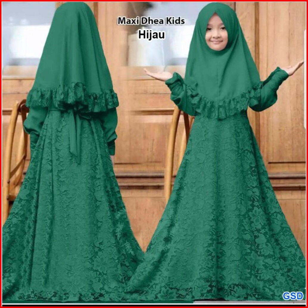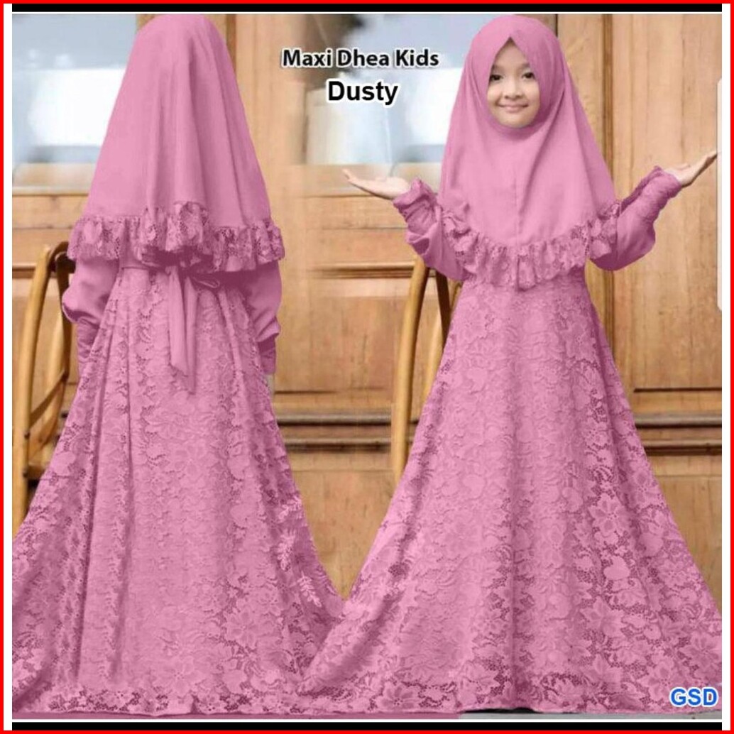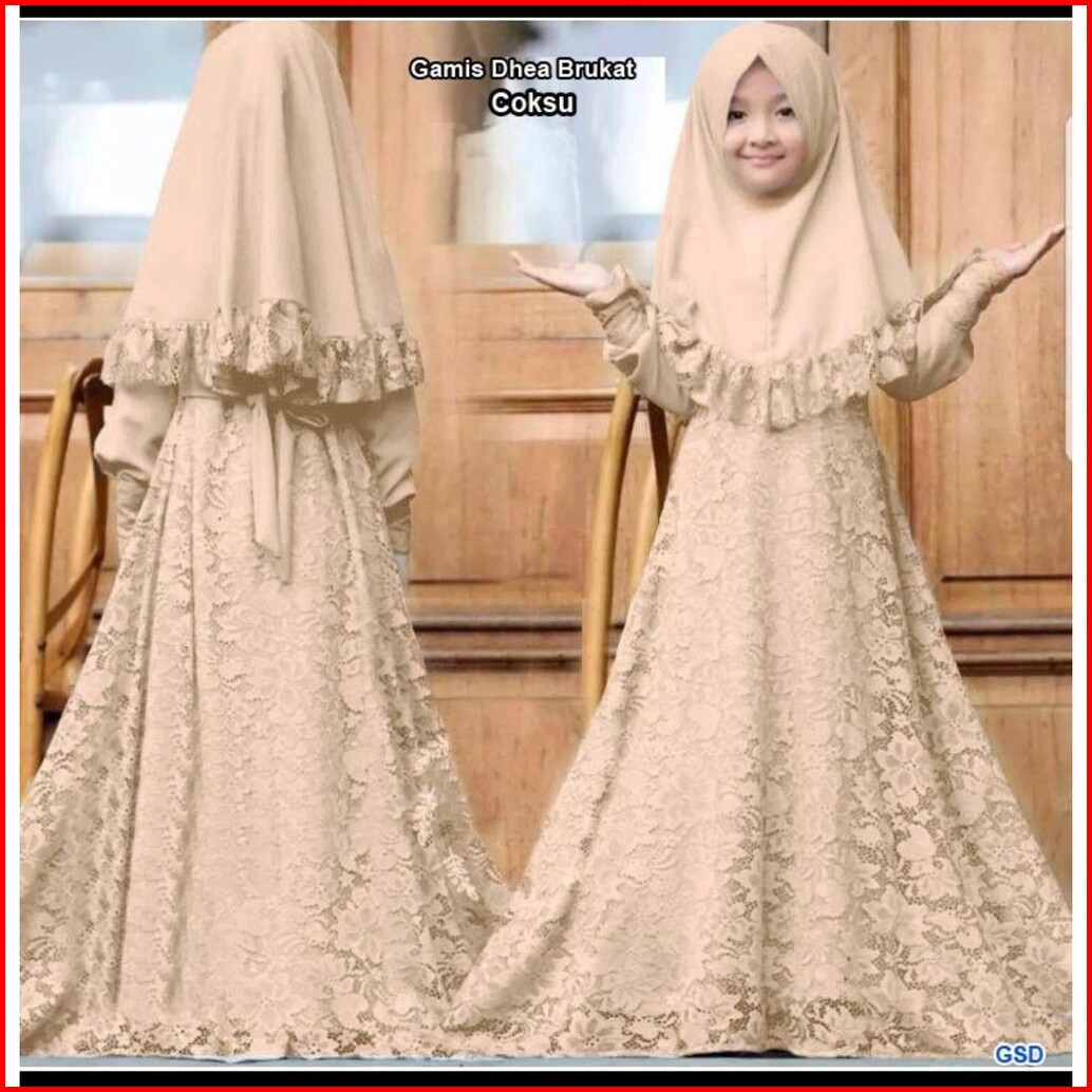 Dijamin Real Gamis Dhea Brukat Tulang Glitter Anak Free Bergo Maxi Dress Muslim All Size Fit 6-9th