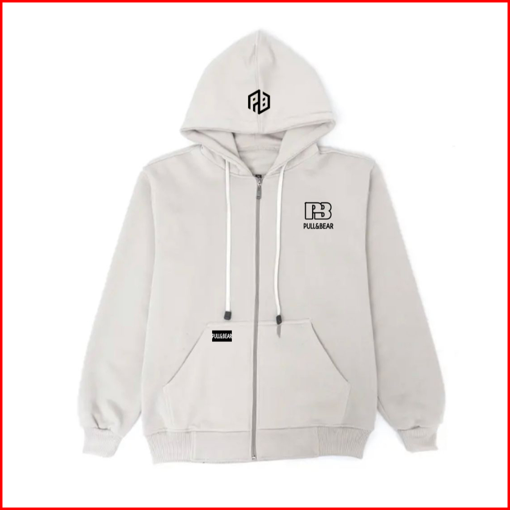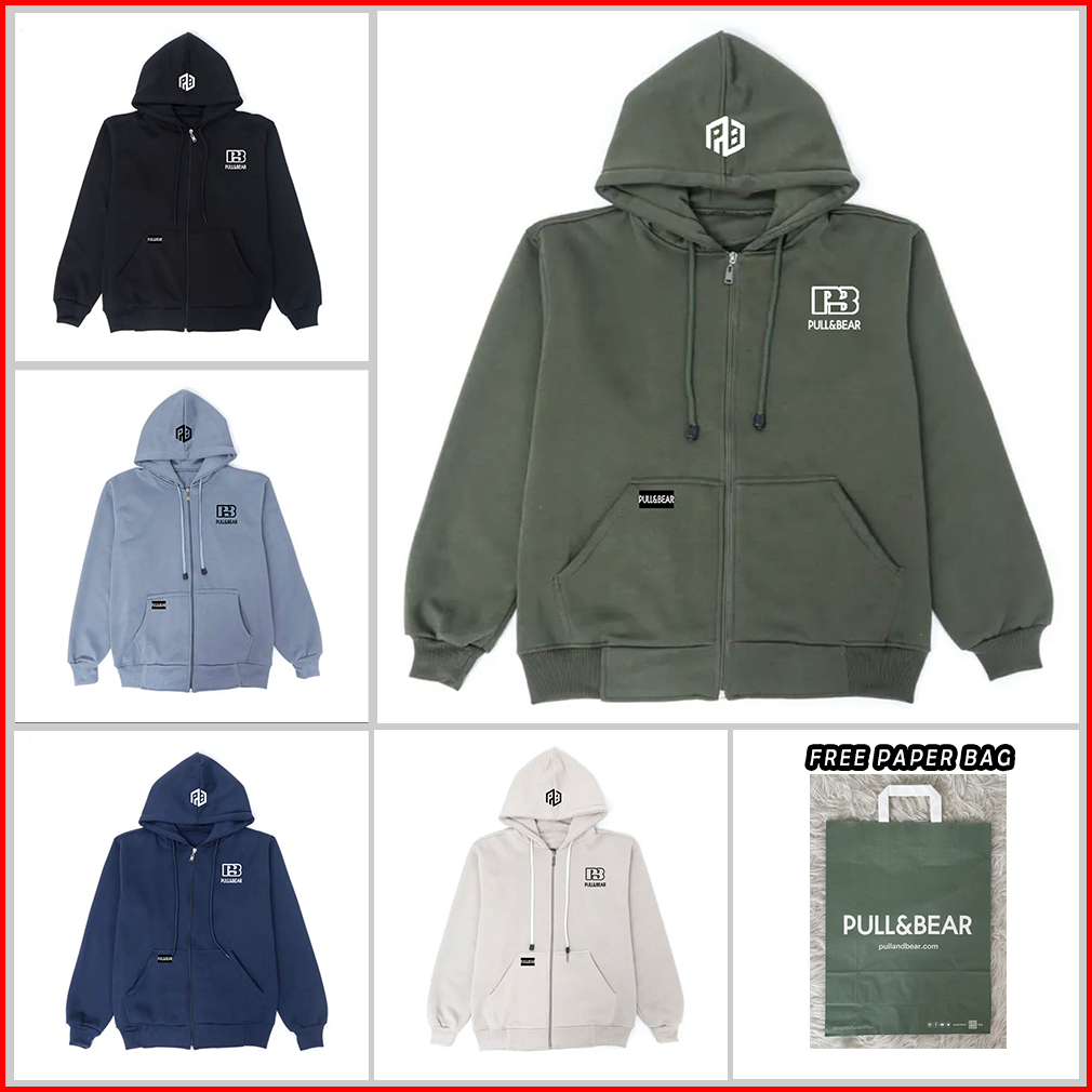 Free Paper Bag Hoodie Zipper Pull And Bear Ful Bordir Basic Pria - Wanita Oversize Premium Quality F1