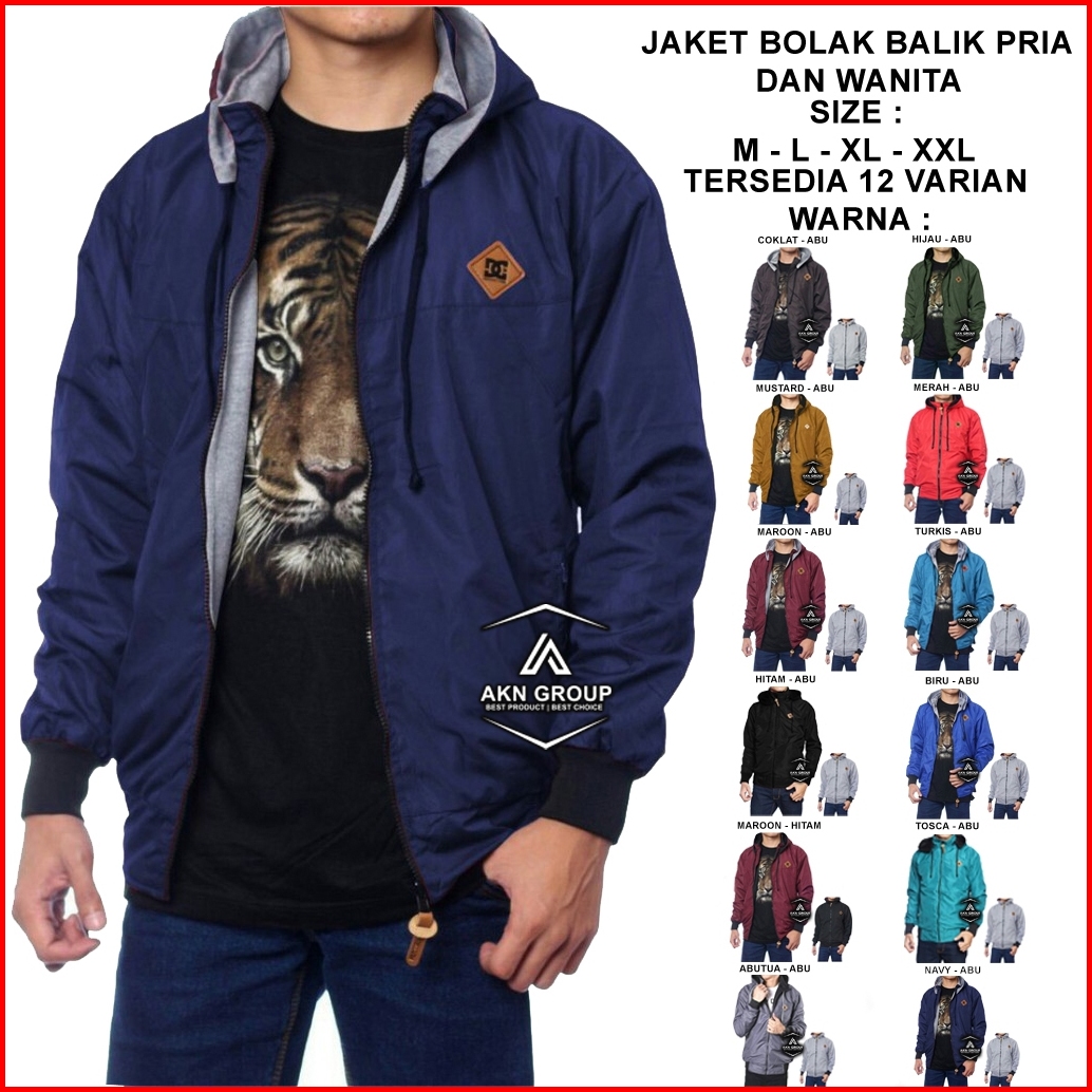 Jaket Bolak Balik Pria Big Size Bb 2in1 Ukuran Besar Parasut Anti Air Fleece Size Jumbo M L Xl Xxl