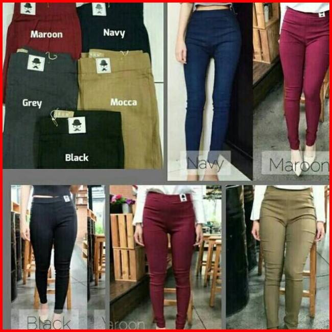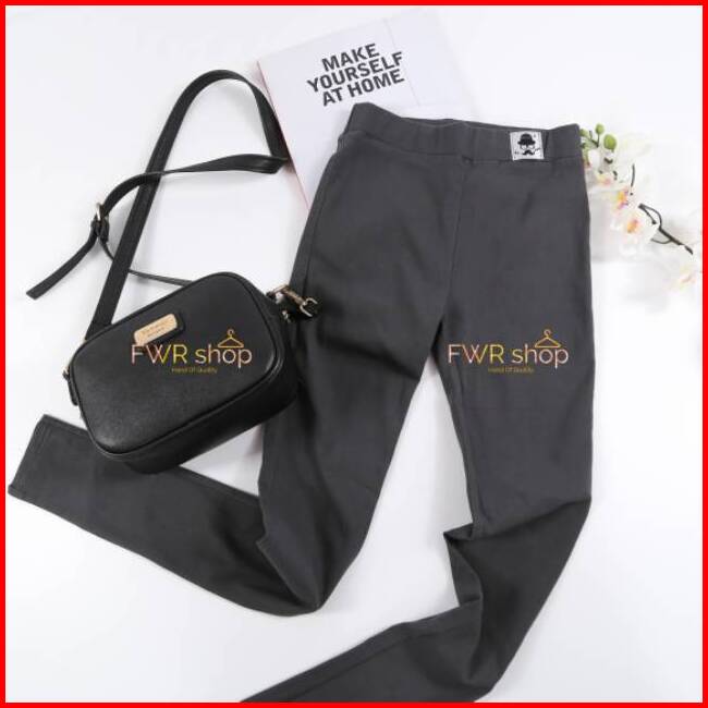 Fwr - Celana Panjang Skinny Jegging Kumis Bahan Softjeans Satin Import O-black Mustache 802