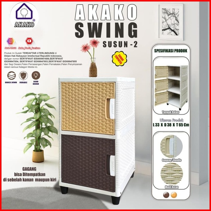 Akako - Lemari Pakaian Minimalis Swing 2 Susun Lemari Plastik Lemari Baju Lemari Rotan 12.12
