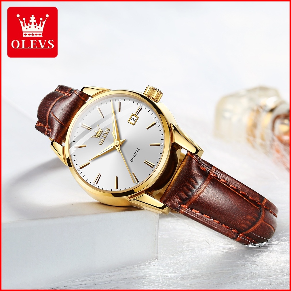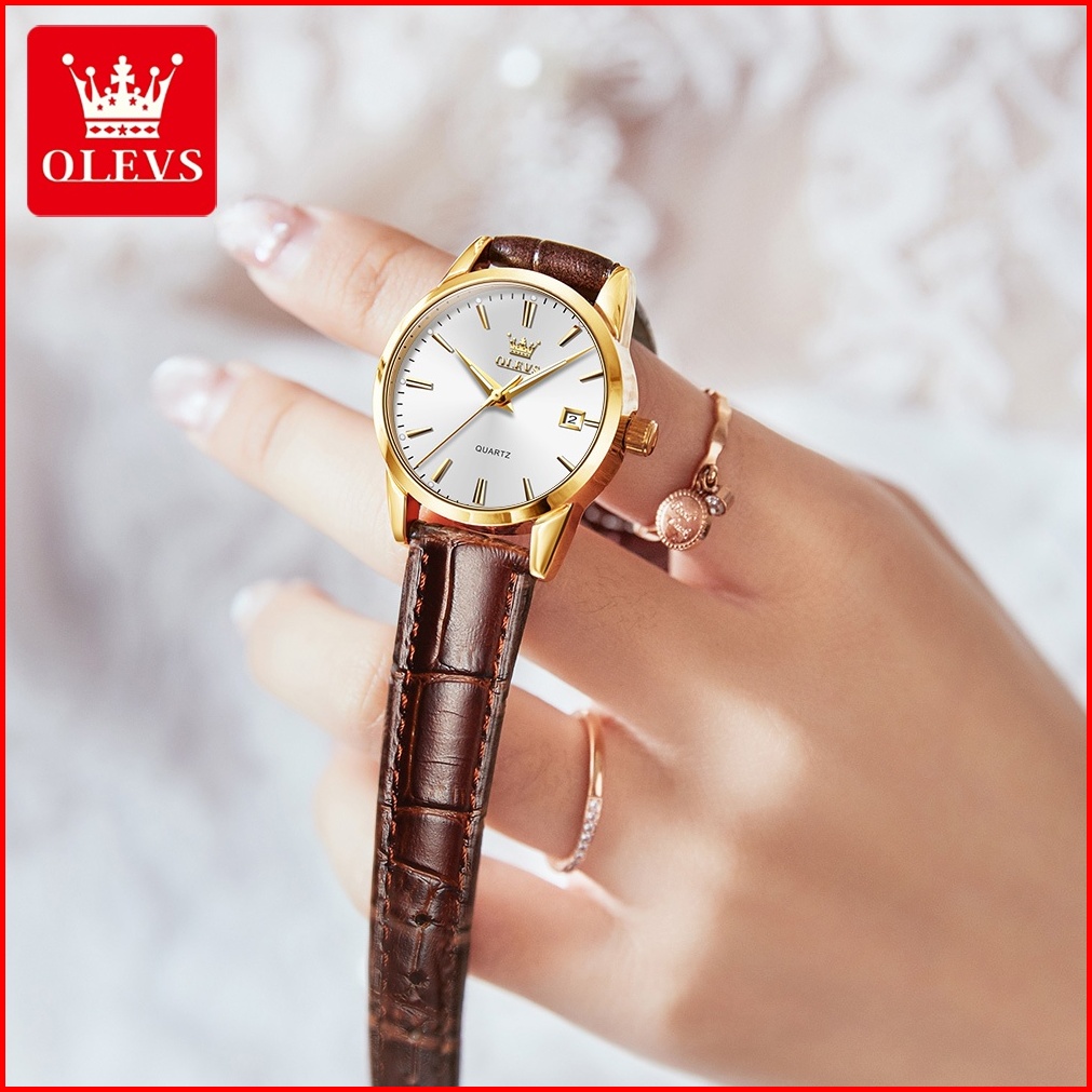 Olevs Jam Tangan Wanita Anti Air Original Branded Kecil Tahan Air Tali Kulit Kuarsa Arloji Terbaru 2025 Ready Stock Mode