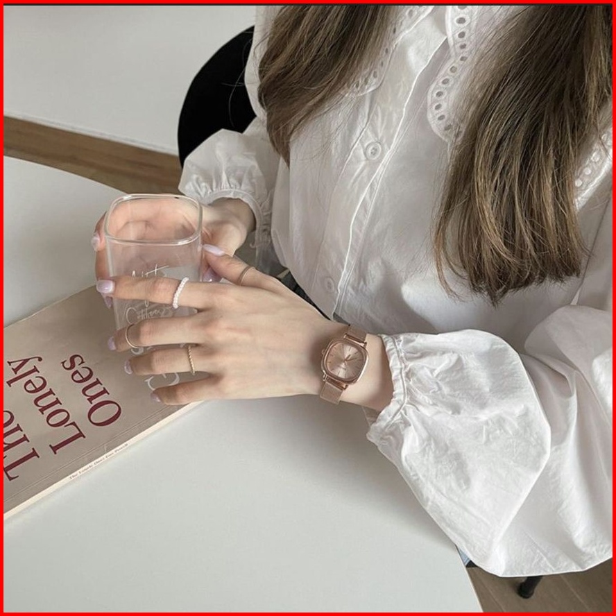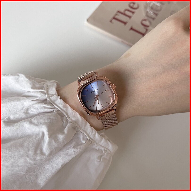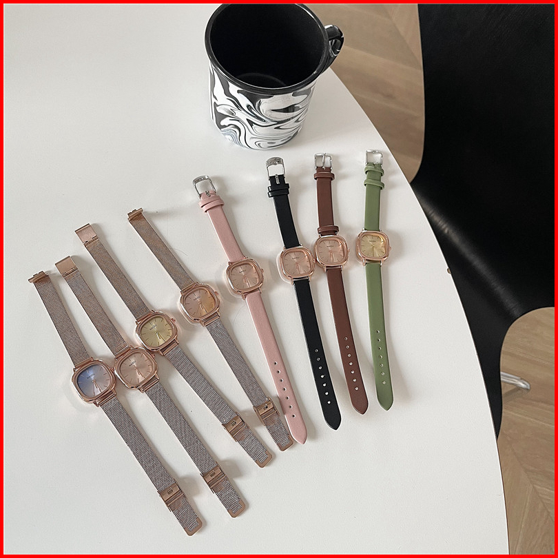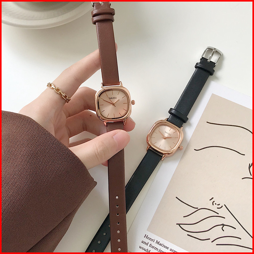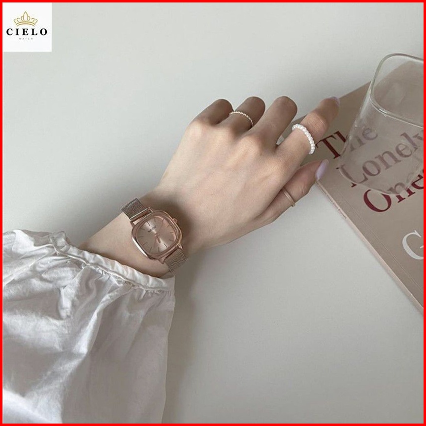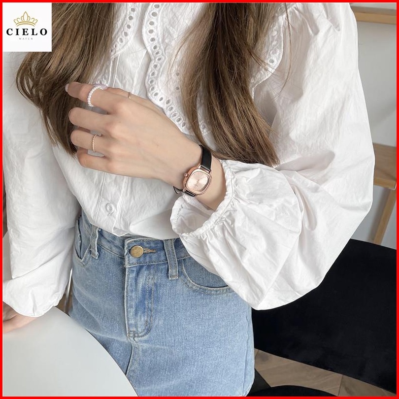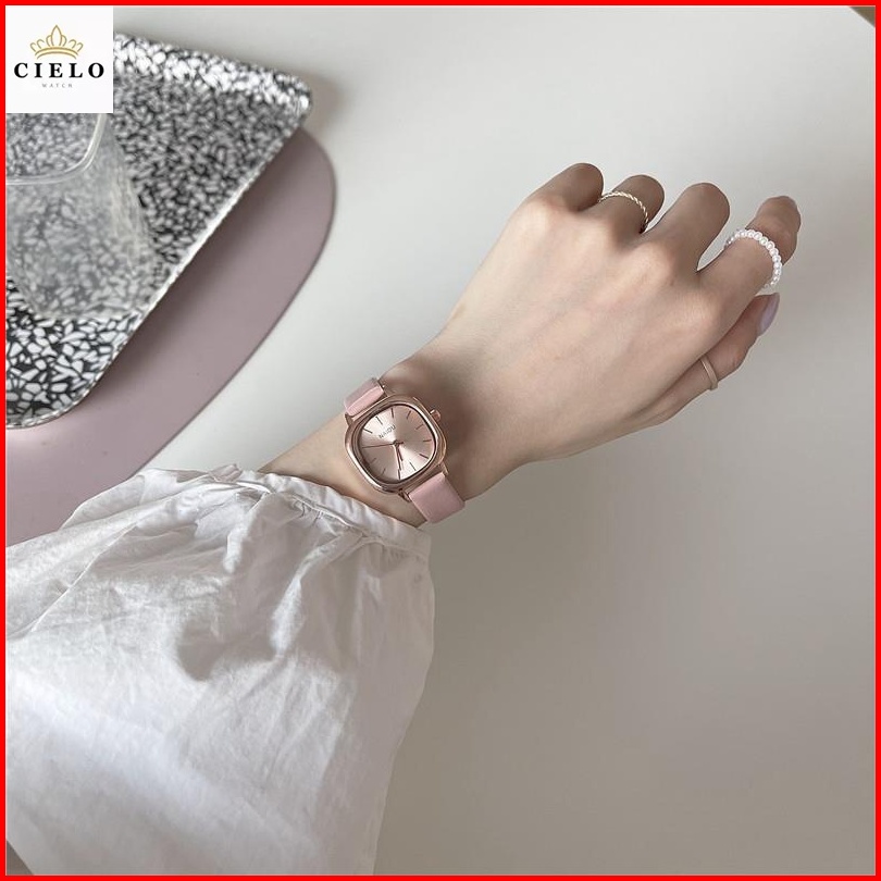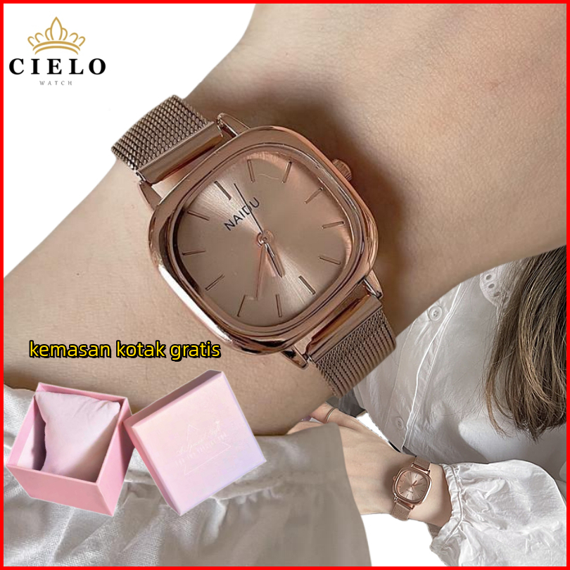 Cielo Jam Tangan Wanita Automatic Watch Arloji Naidu Korean Untuk Wanita Dengan Kotak Tali Kulit Klasik Stainless Square