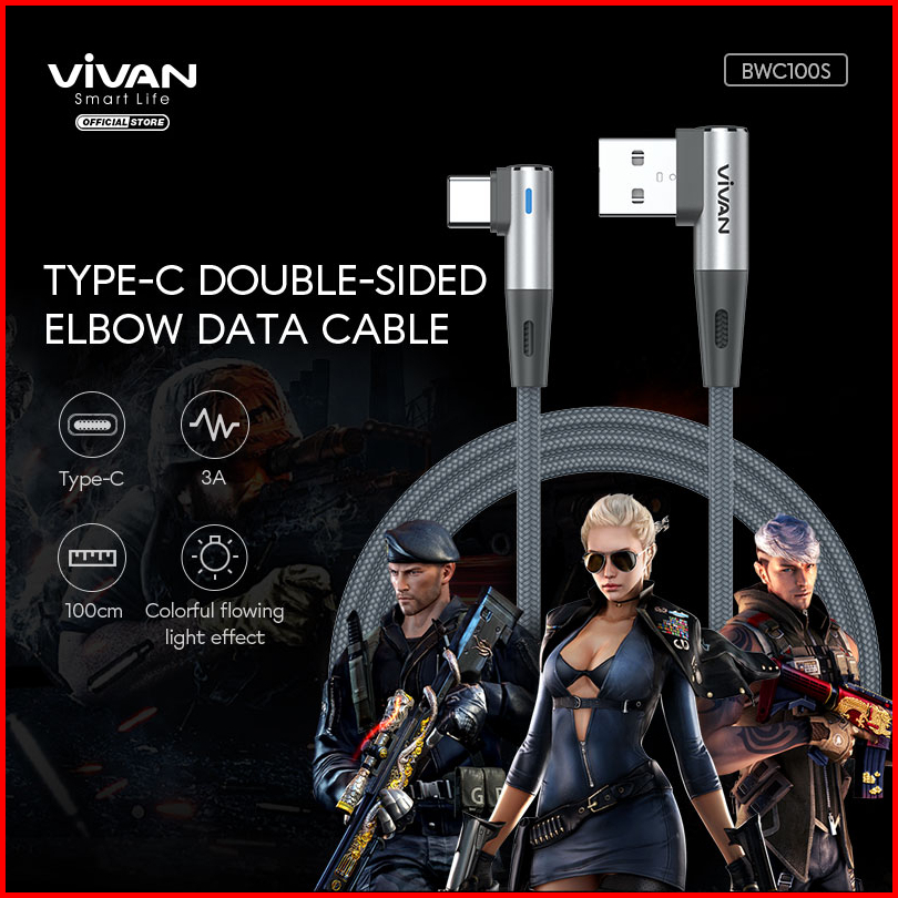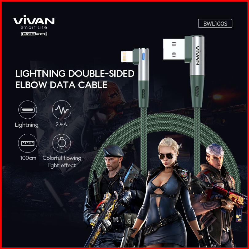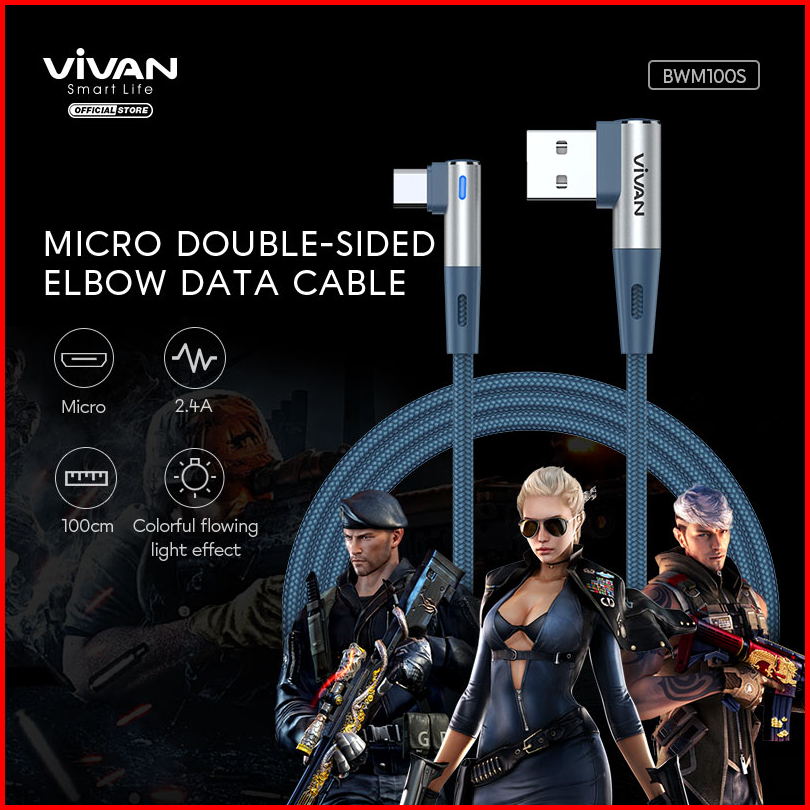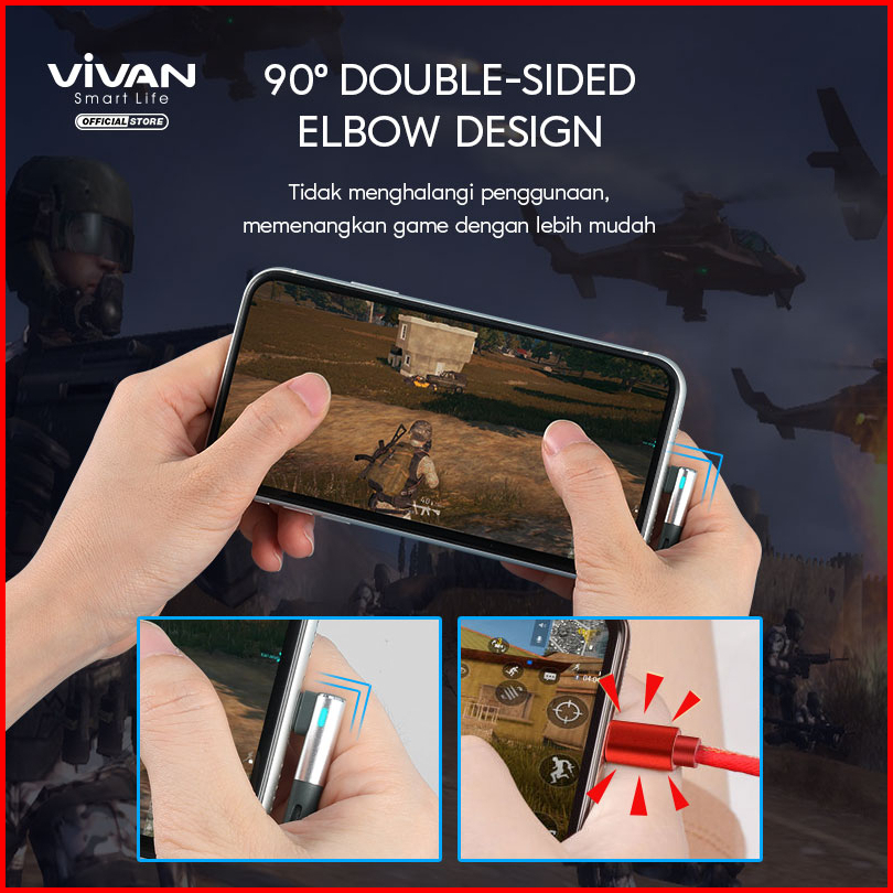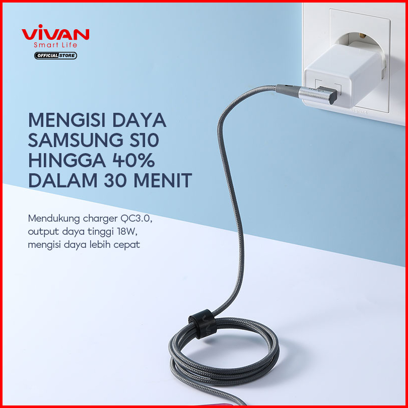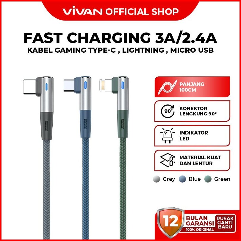 Vivan Kabel Data Type C Lightning Micro Usb Kabel Fast Charging Gaming Siku 2.4a 3a - 1m - Original - Garansi 1 Tahun -