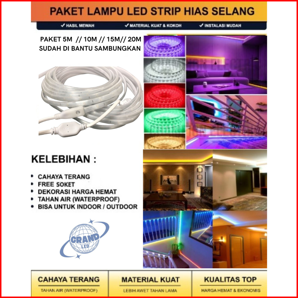 Lampu Selang Led Strip Smd 5050 220v Paket 5m 10m 15m 20m Free Soket 1pcs Sudah Bantu Pasang Drop Ceiling Plafon- Ac 220