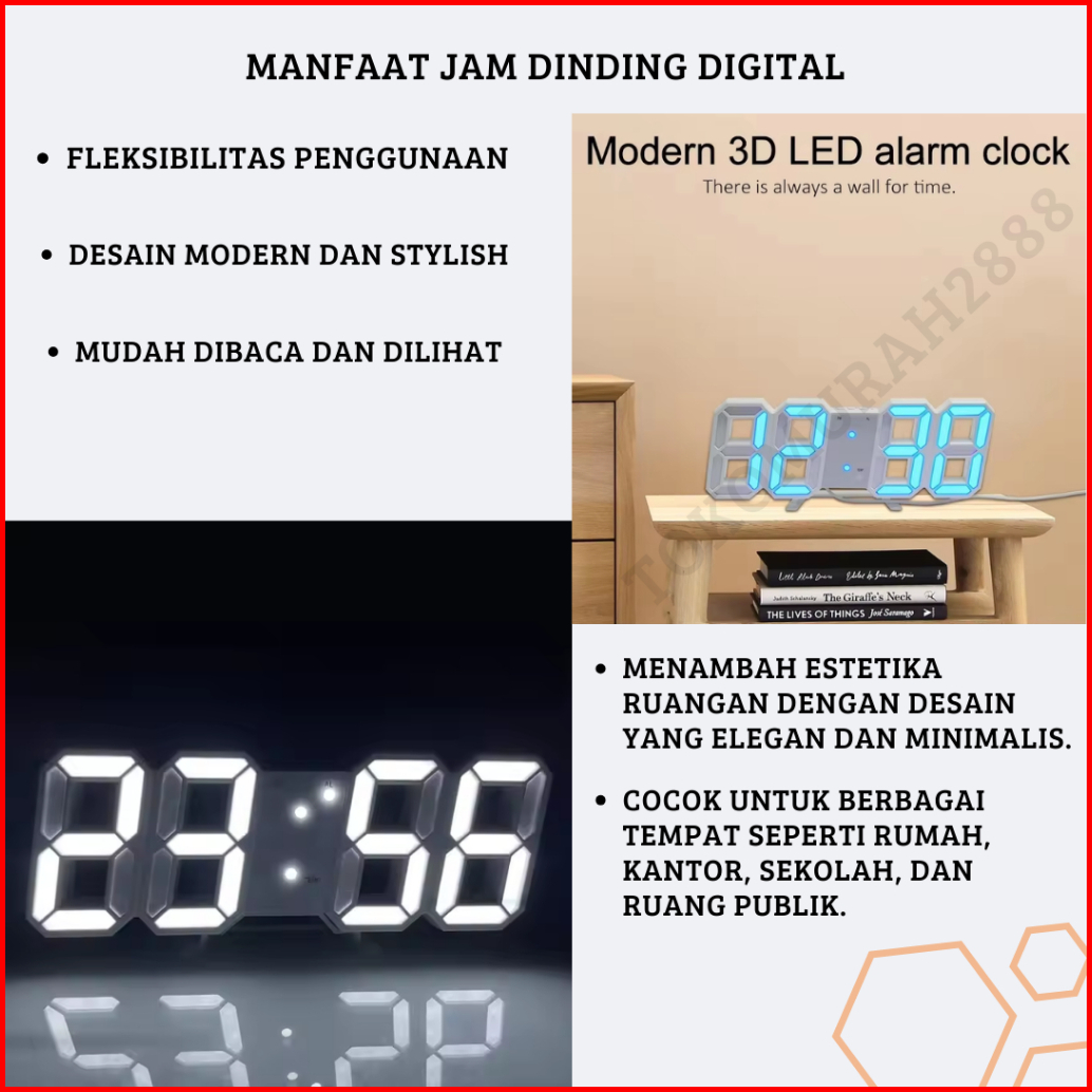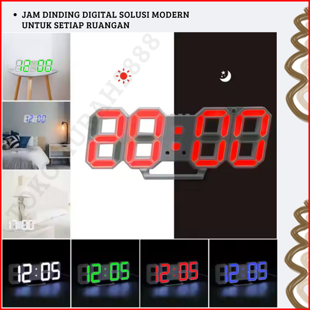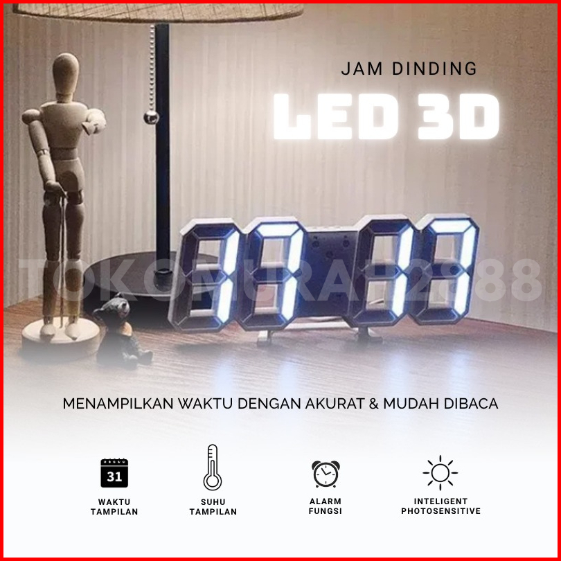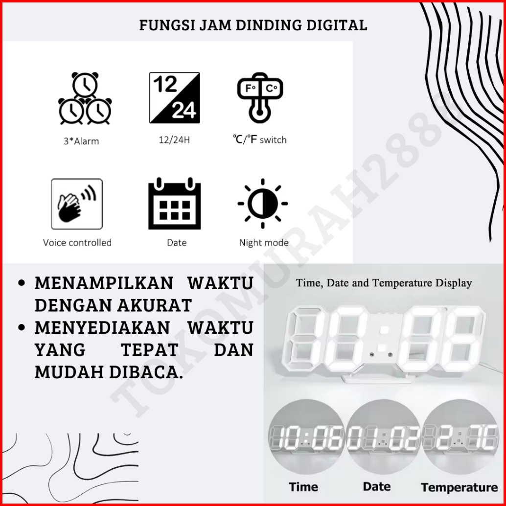 Jam Dinding Digital Led Jam Meja-alarm-suhu Jam 3d Besar Modern