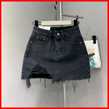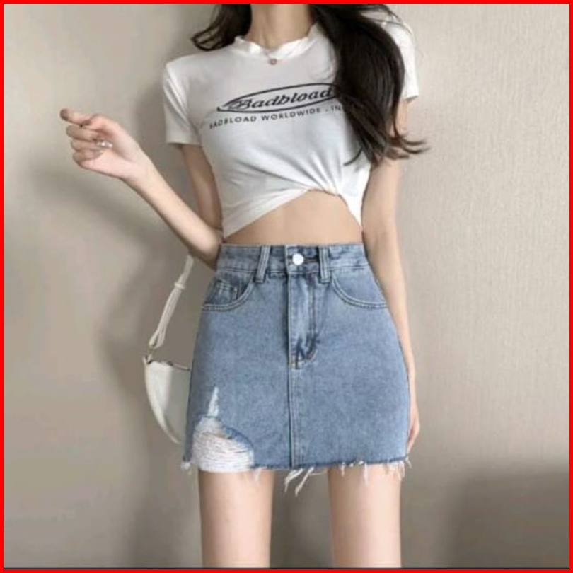 Rok Mini Jeans Pendek Wanita Line Korean Style Ripped Fashion Wanita