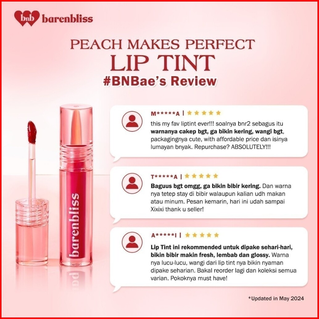 Best Selling Bnb Barenbliss Peach Makes Perfect Lip Tint Korea Lip Gloss 24h Moisturizing Lip Tint Yang Ringan Tahan Hin