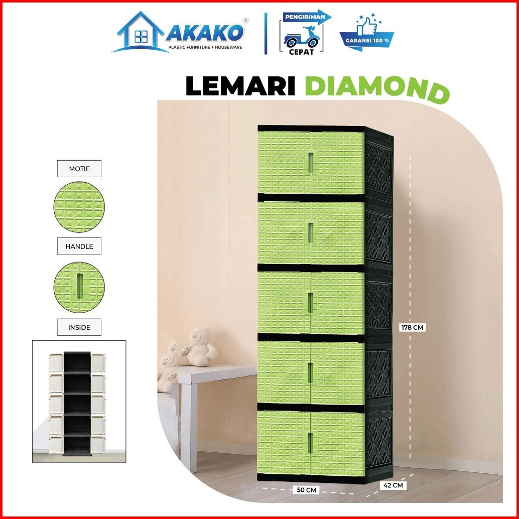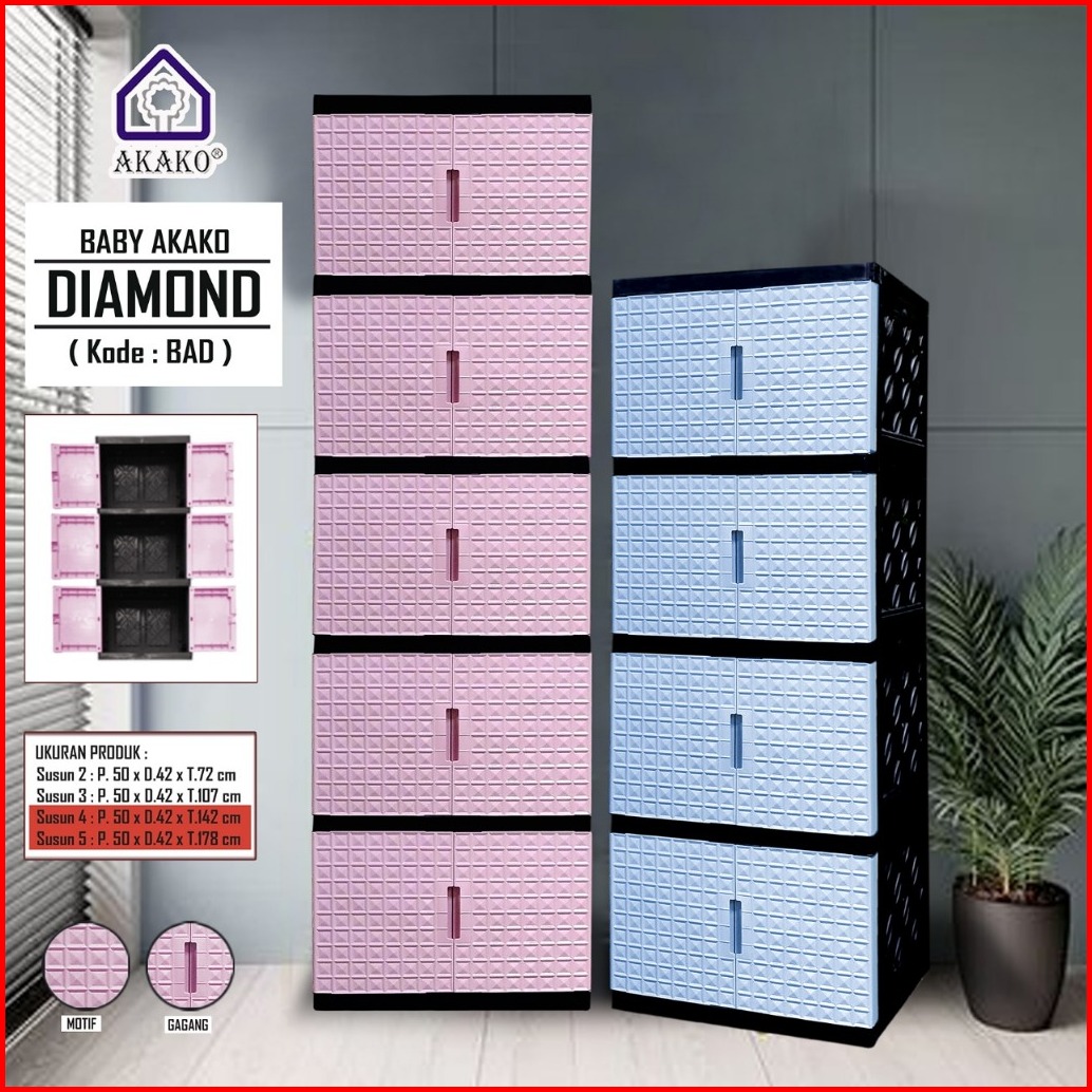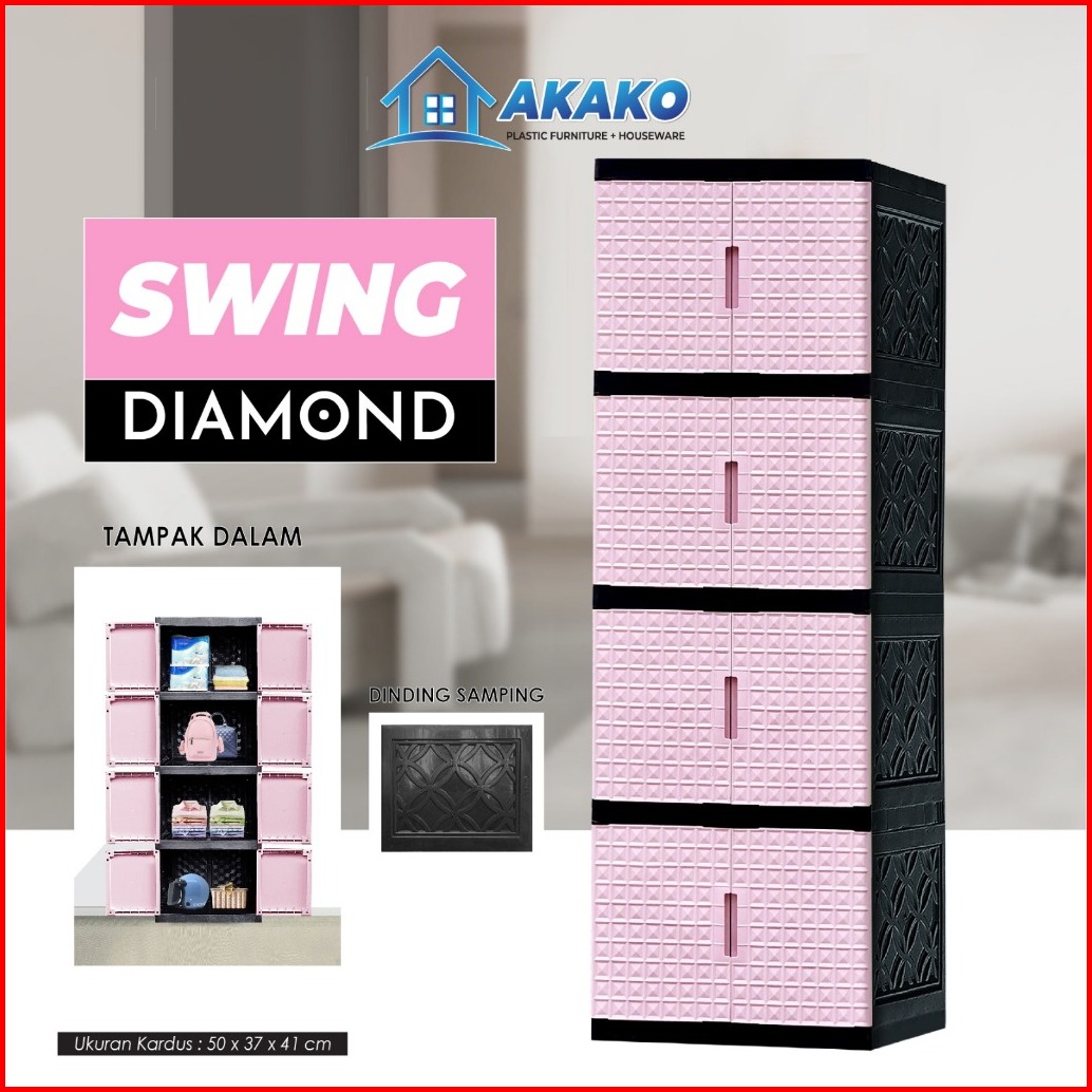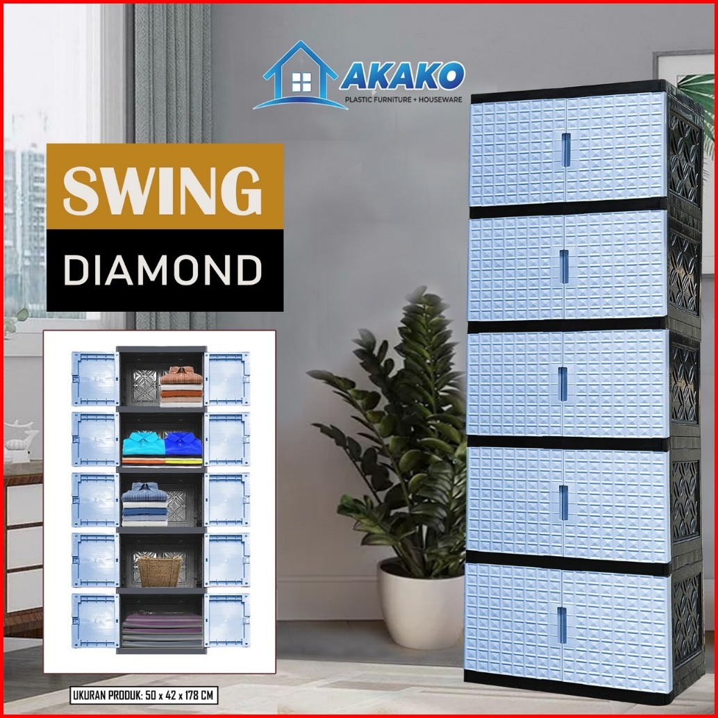 Akako - Lemari Pakaian Plastik Swing Diamond Susun 4 Dan 5 - Kode Bad