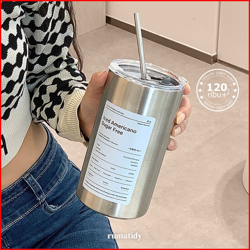 Rumatidyjoji Tumbler Stainless Steel Coffee Tea 360ml 600ml Aesthetic Botol Minum Kopi Teh