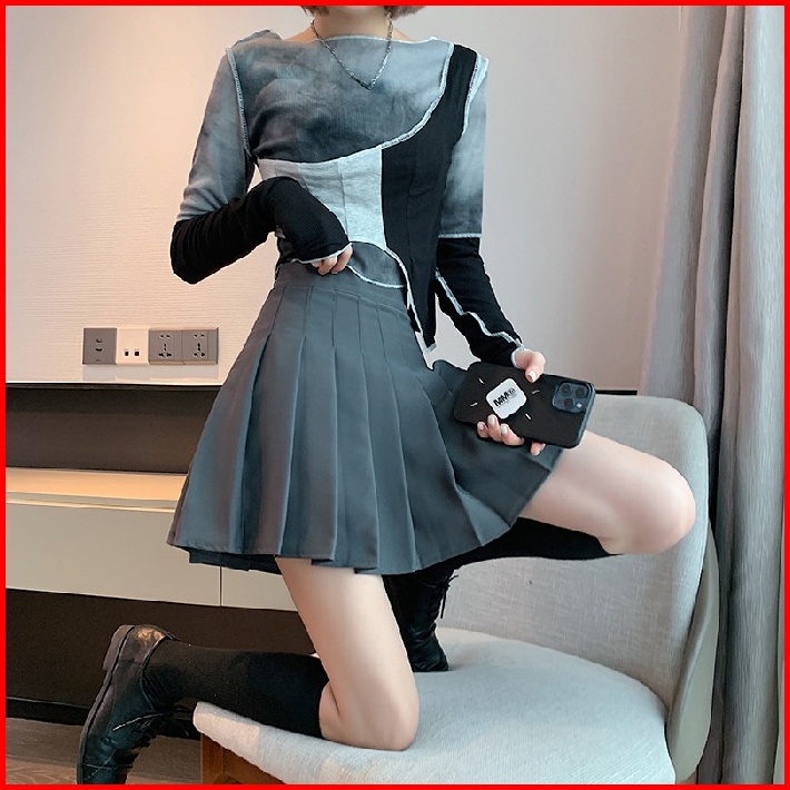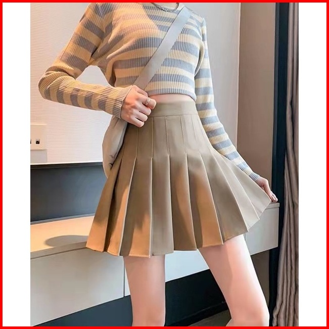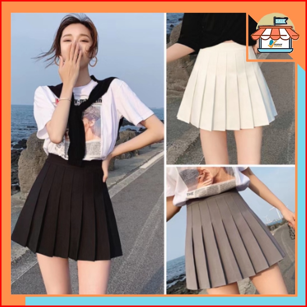 Rsb Rk258 Rok Pendek Mini Korean Women Mini Skirt Pleated Plain Rok Pendek Polos Model Lipat S-jumbo