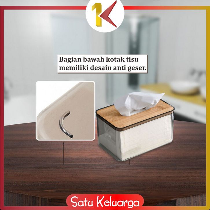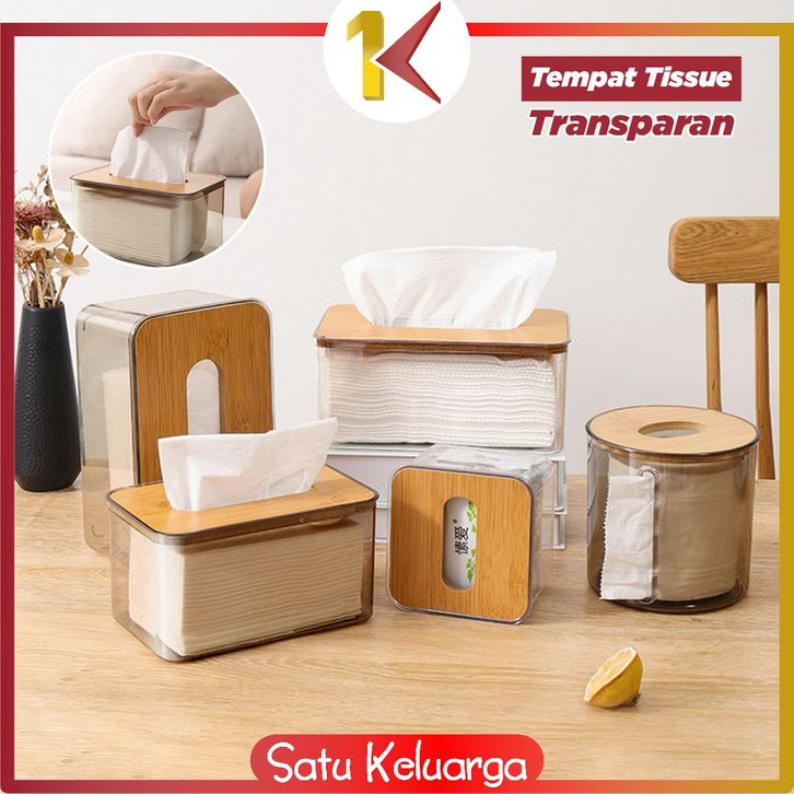 SK-C999 Tempat Tissue Transparan Estetik Tutup Kayu Minimalis / Kotak Tissue Box Wadah Tisu / Tempat Tisu / Tissue Kamar