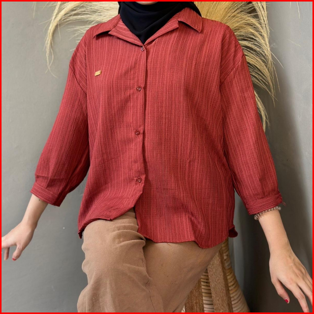 Inara Shirt - Kemeja Kancing Basic Wanita Lady Crush Premium Free Pin