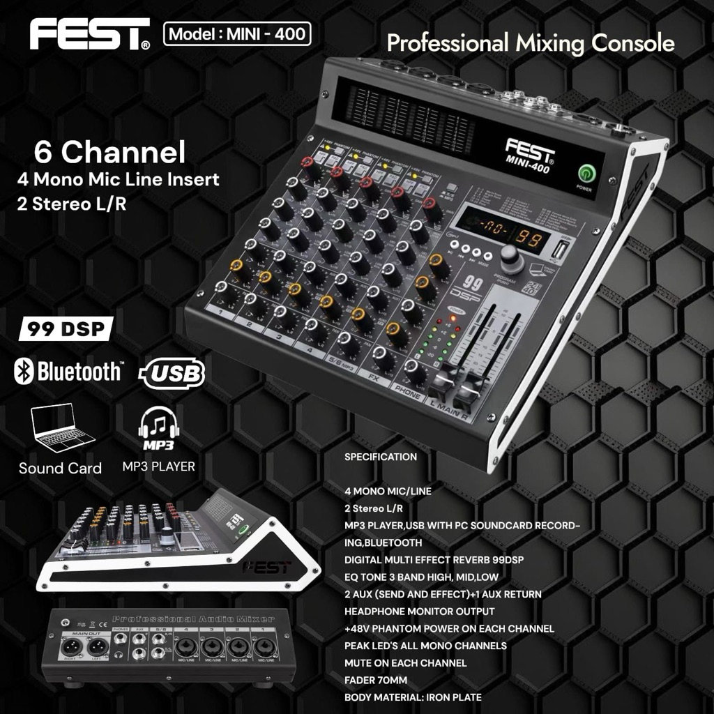 Mixer Fest Mini 400 Original Product 6 Channel Bluetooth