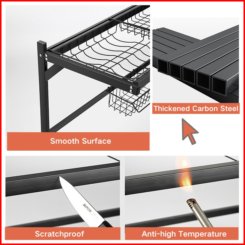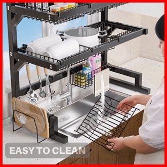Rak Piring Wastafel Stainless Steel Hitam Peralatan Dapur Kokoh Kuat Rak Cuci Piring Dapur