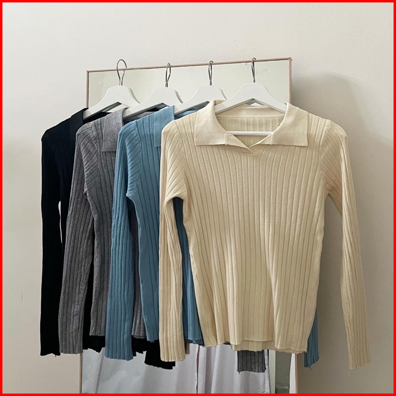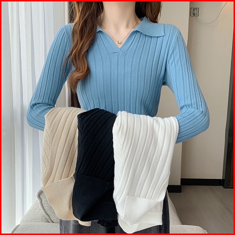 Atasan Wanita Terbaru Longsleve Korea Pressbody Baju Atasan Wanita Berkerah Polo Bahan Rajut