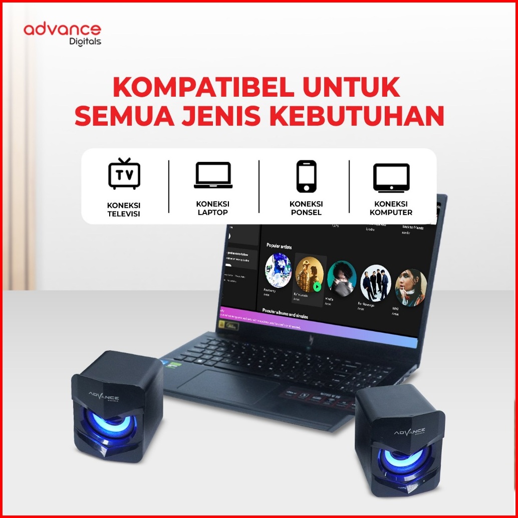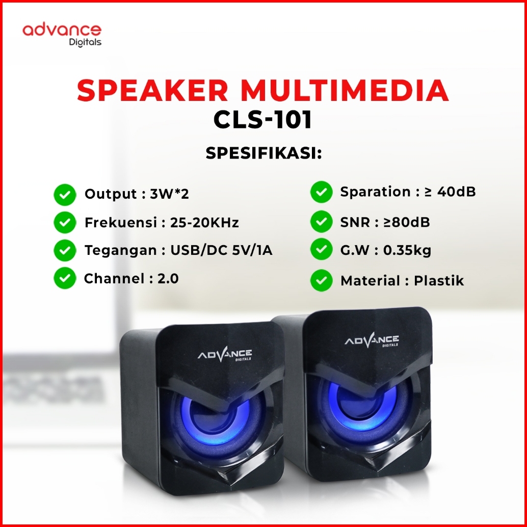 Advance Speaker Komputer Gaming Usb Audio Super Bass Led Cls101 Cls110 Garansi 1 Tahun