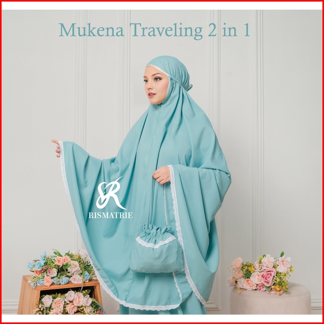 Mukena Travel 2 In 1 Dewasa Mukenah Travelling Katun Mikro Tas Serut