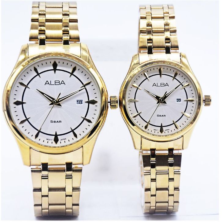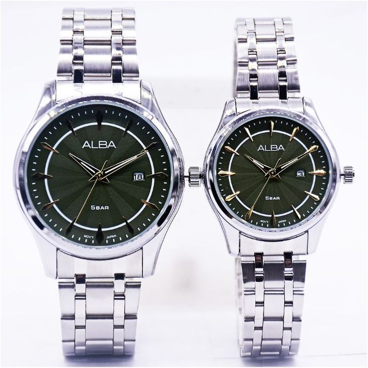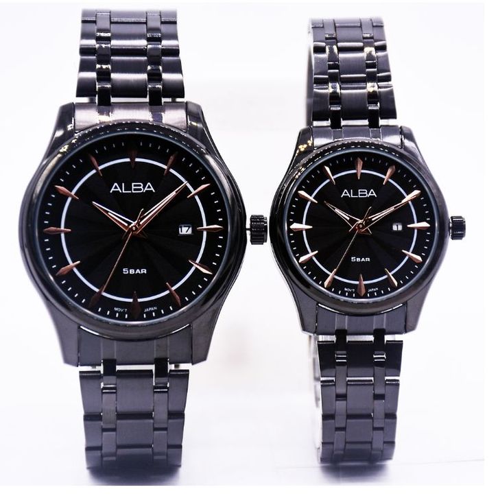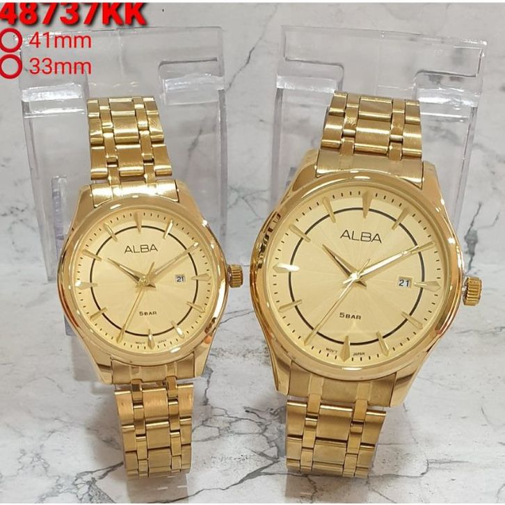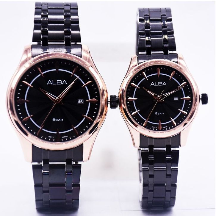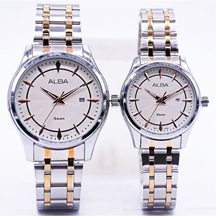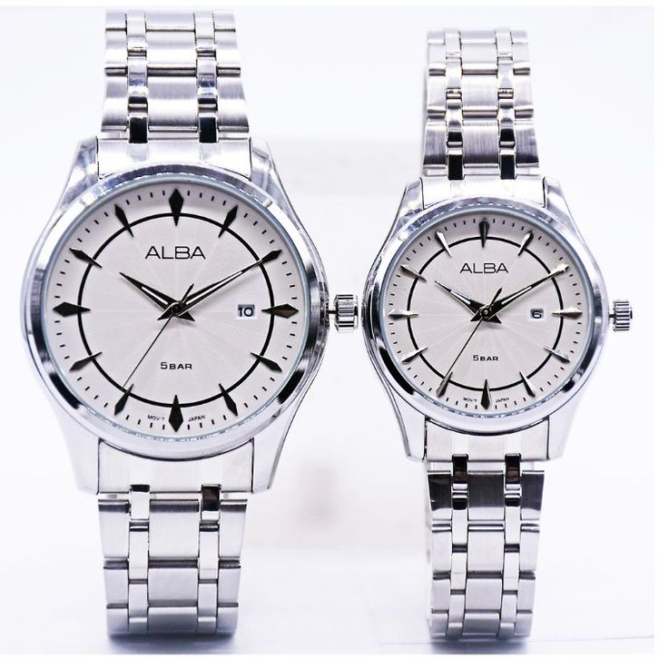 Jam Tangan Couple Alba Premium Tali Rantai Stainless Steel Free Box dan Baterai Cadangan