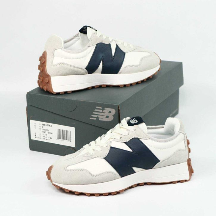 SEPATU NEW BALANCE 327 WHITE NAVY ORIGINAL BNIB FULL TAG BARCODE BAHAN LEATHER KULIT