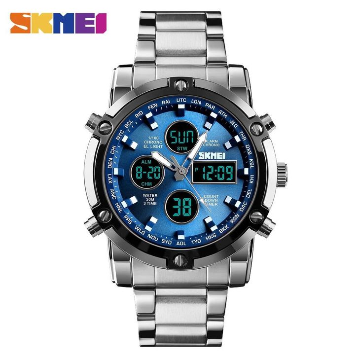 SKMEI 1389 Jam Tangan Pria Digital Analog Tali Stenlis MGOS Ready Stock