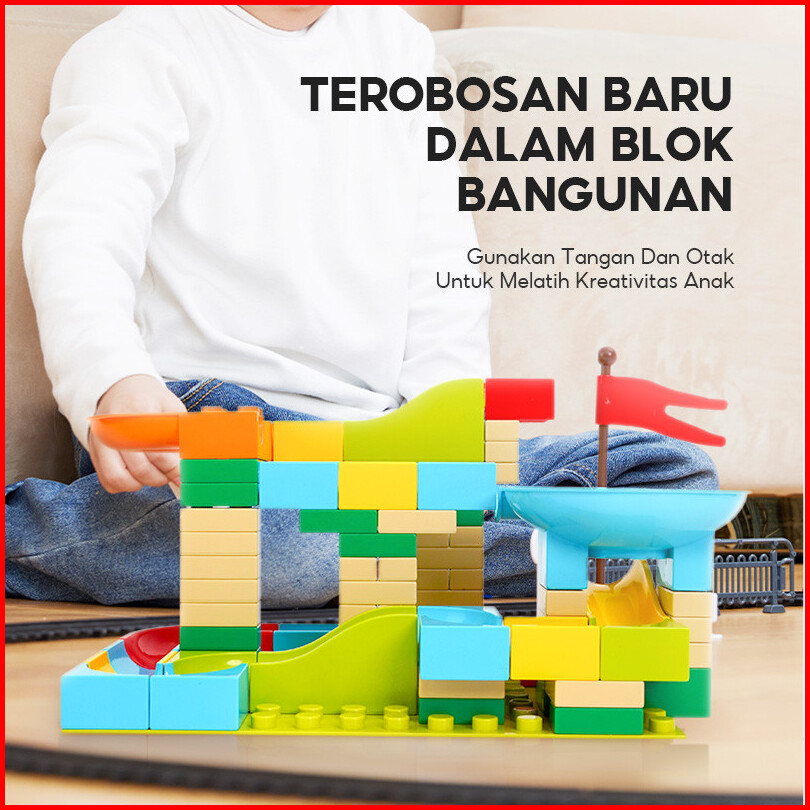 Ohsome - Yinerle Puzzle Rolling Ball Big Flush Building Blocks Mainan Balok Susun Prosotan Seluncur Edukasi Anak Balita