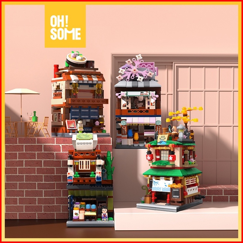 Ohsome -loz Mainan Balok Mainan Bricks Blok Bangunan Susun Edukasi Mainan Kimono Shop Noodle Canteen Hot Spring House Ma