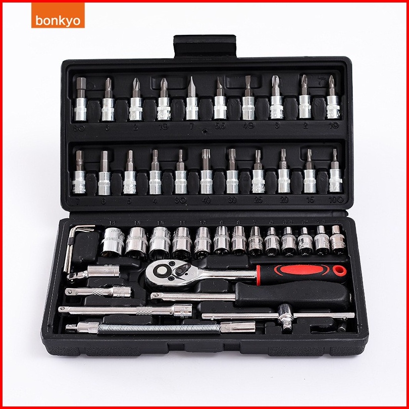 Bonkyo Kunci Sok 46 Pcs Set Socket 1 4 Full Lengkap Socket Tool Kit Pas Ring L Motor Mobil Set Kunci Shock 1 4 Socket Ob