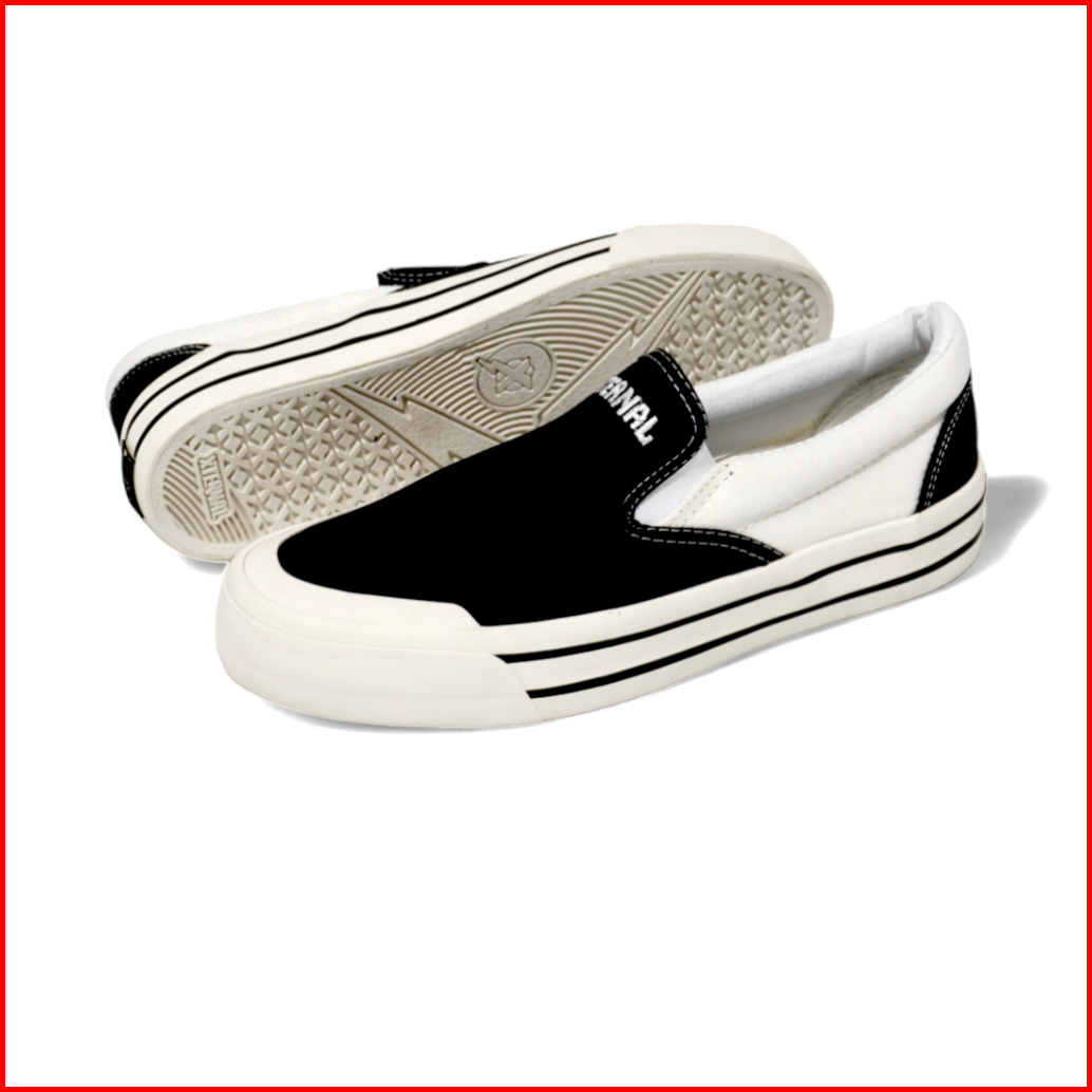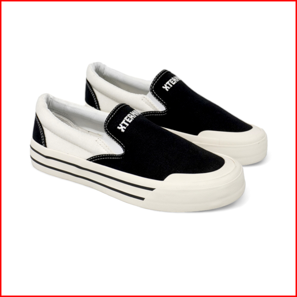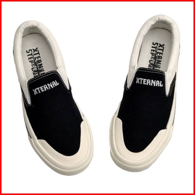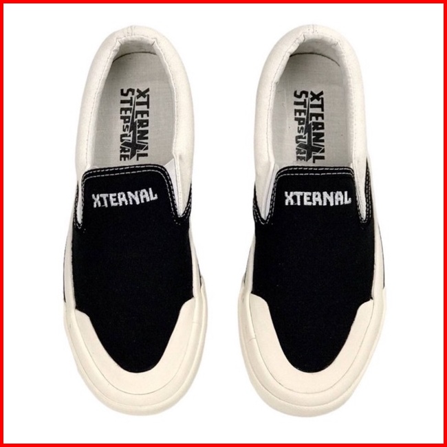 Xternalstepsure - Sepatu Slipon Unisex Middle White Bordir Hf Casual Pria Wanita