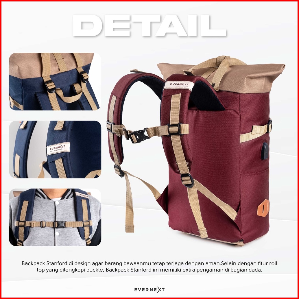 Evernext - Tas Ransel Pria Wanita Tas Sekolah Pria Wanita Backpack Stanford Tas Kuliah Pria Distro
